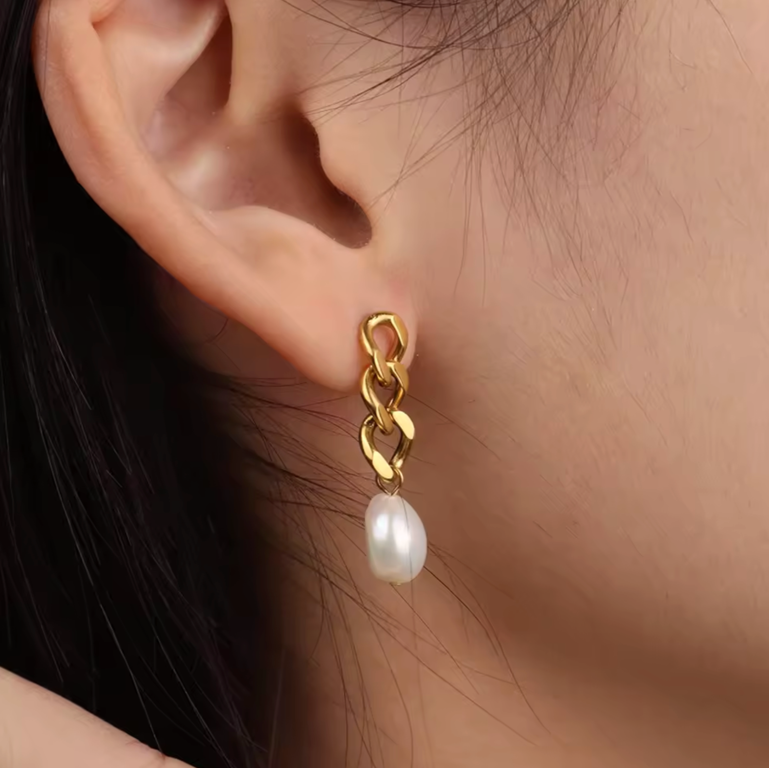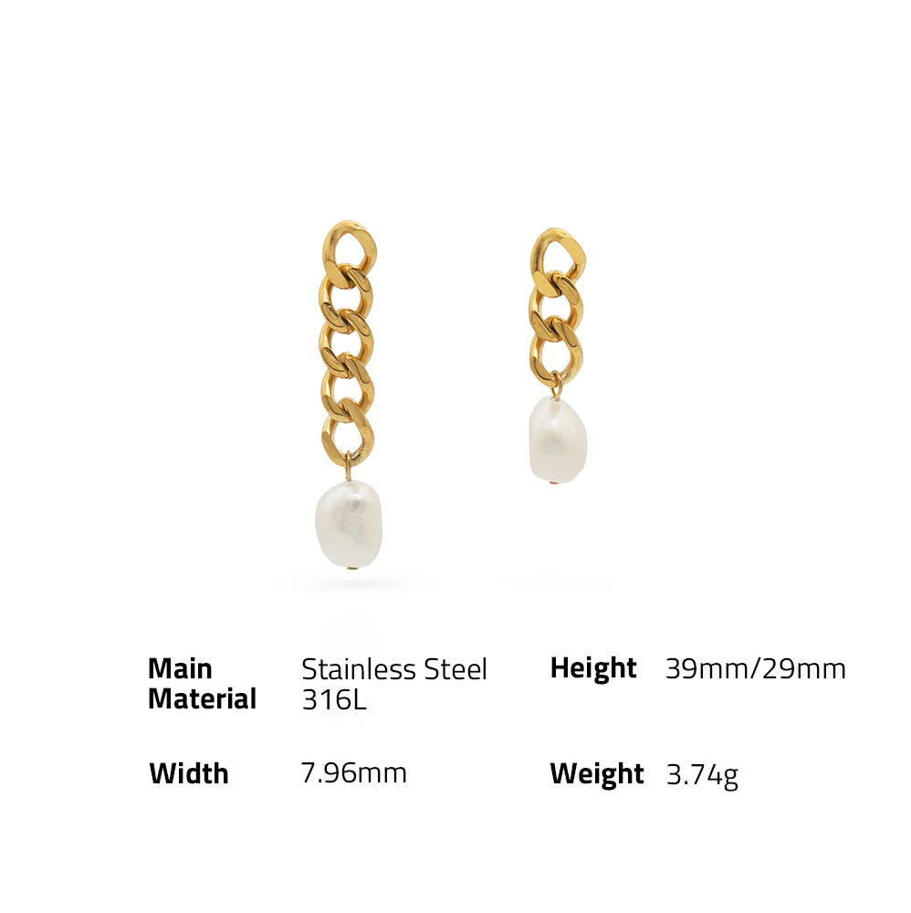 316Lサージカルステンレス ピアス チェーン バロックパール【NY01688】