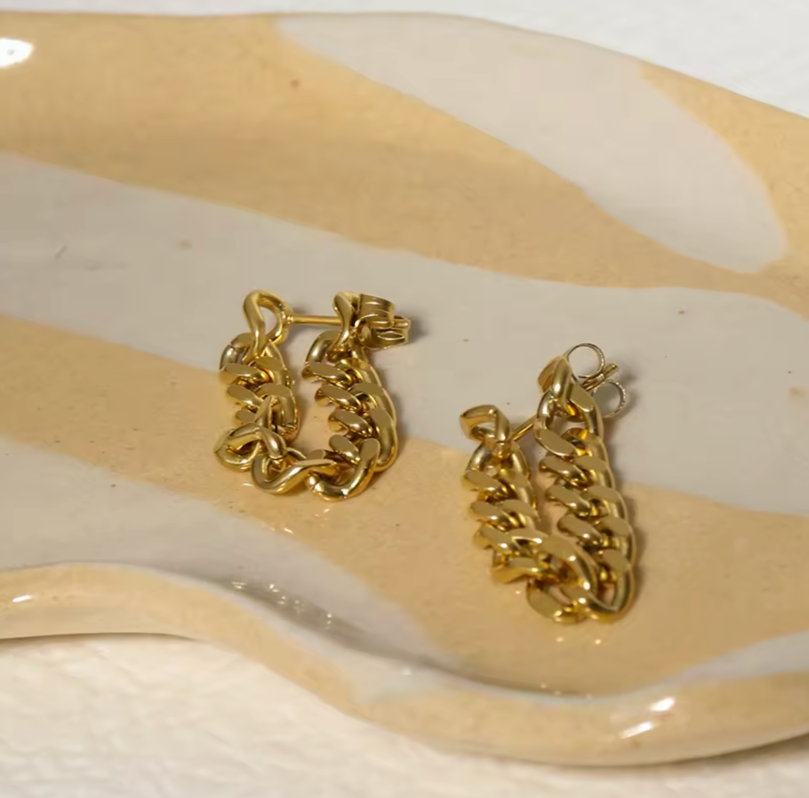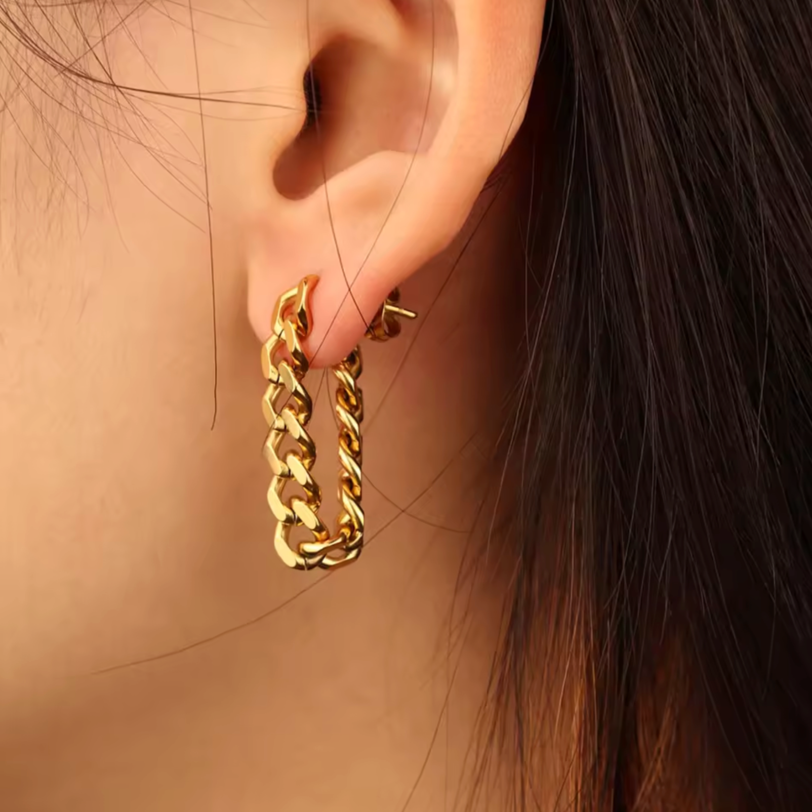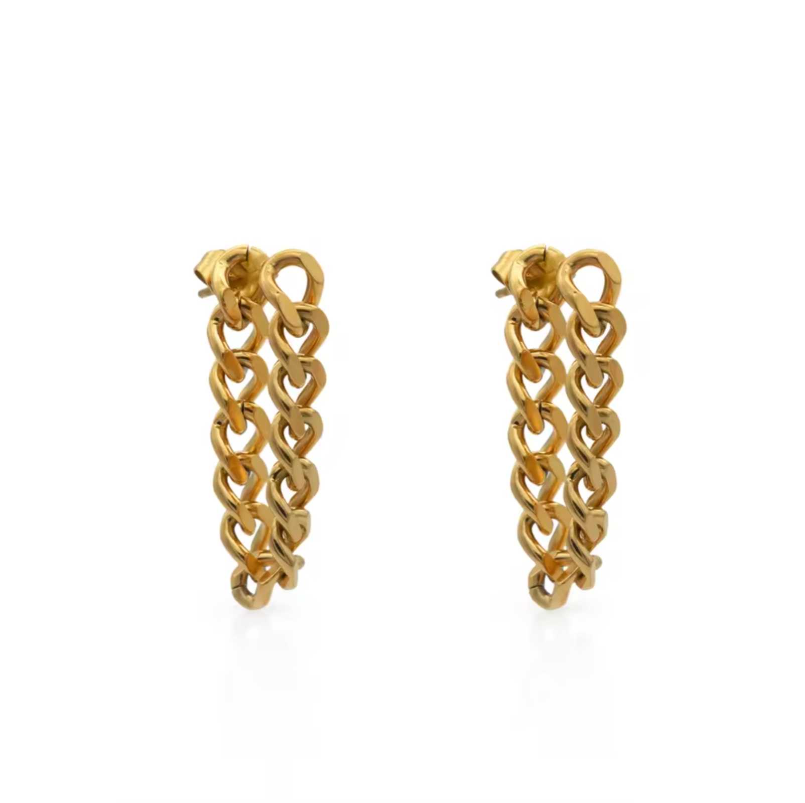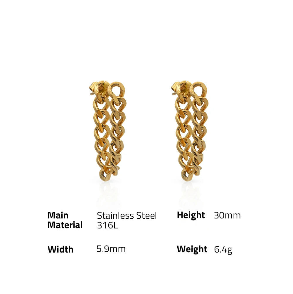 316Lサージカルステンレス ピアス キューバンチェーン タッセル 【NY01752】