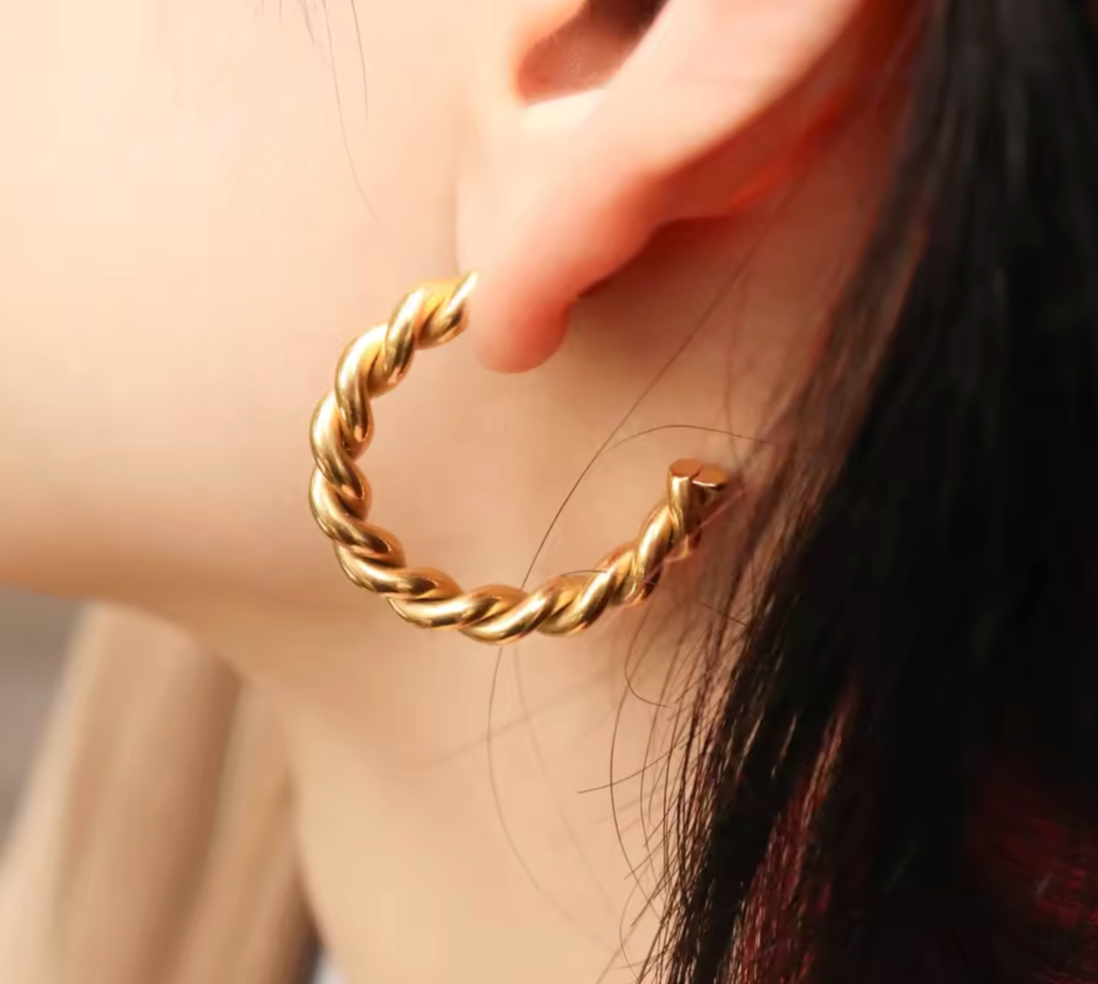 316Lサージカルステンレス ピアス フープ ツイスト 【NY01786】