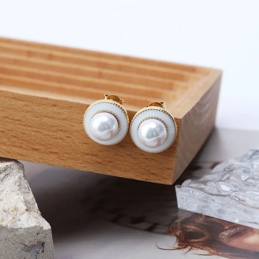 316Lサージカルステンレス ピアス パール エナメル【NY01796】