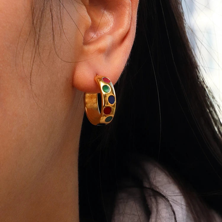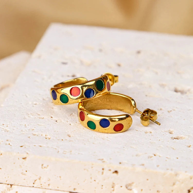 316Lサージカルステンレス 18Kゴールドメッキ ピアス フープ エナメル【NY01811】