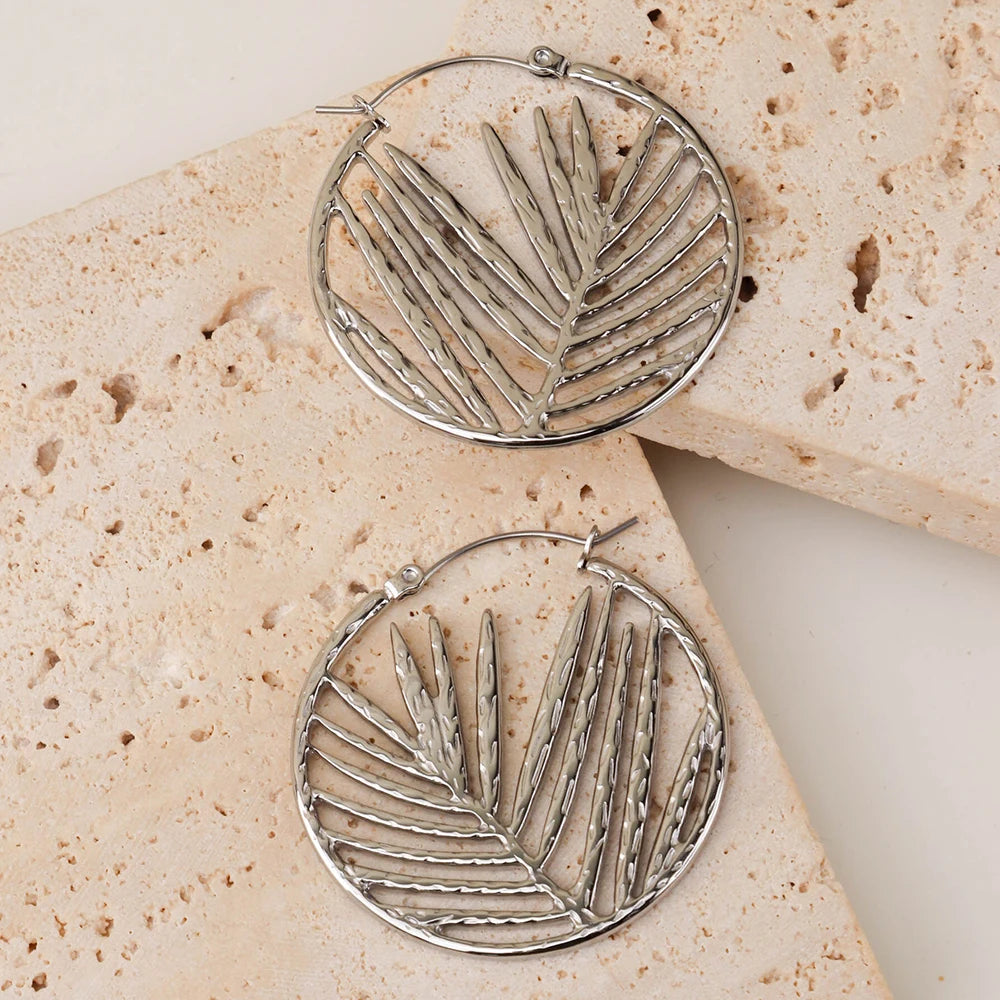 316Lサージカルステンレス ピアス フープ リーフ 葉【NY01813】