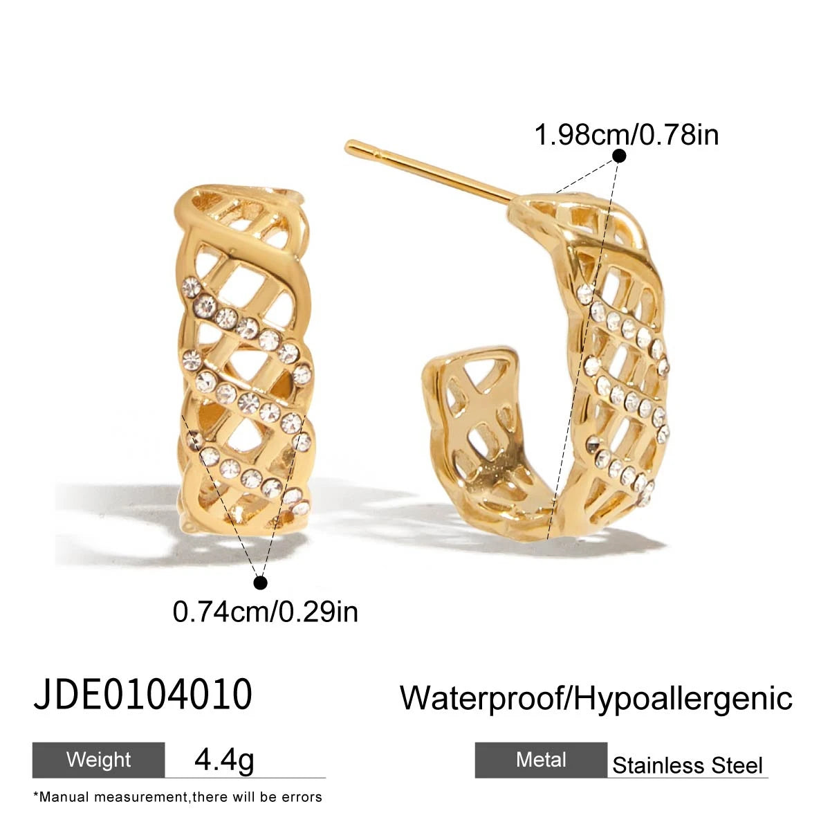 - ピアスのポスト部分はメッキ加工の特性上、キャッチがきつく感じられる場合や、スムーズに取り外せないことがありますが、これは不良品ではありませんのでご了承ください。