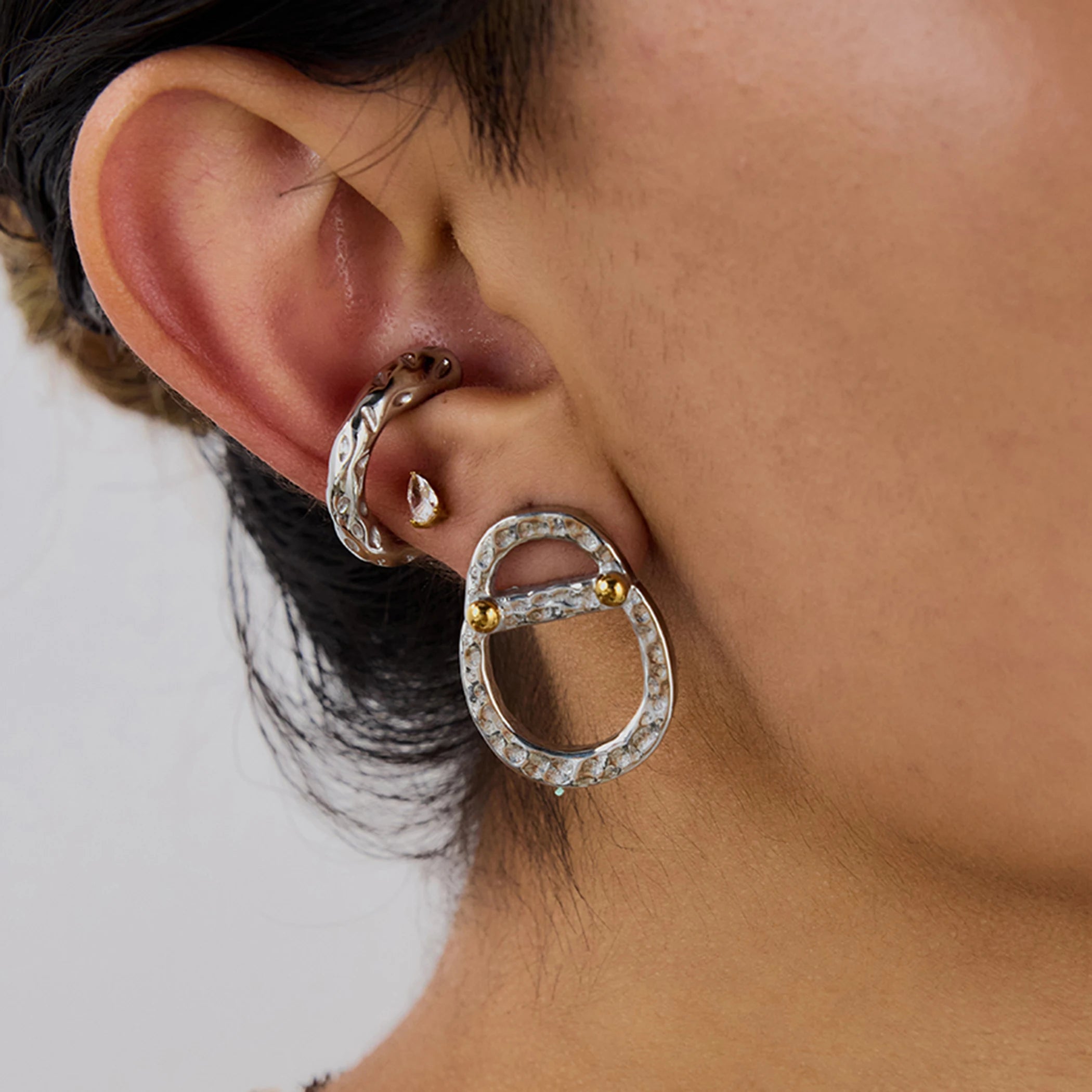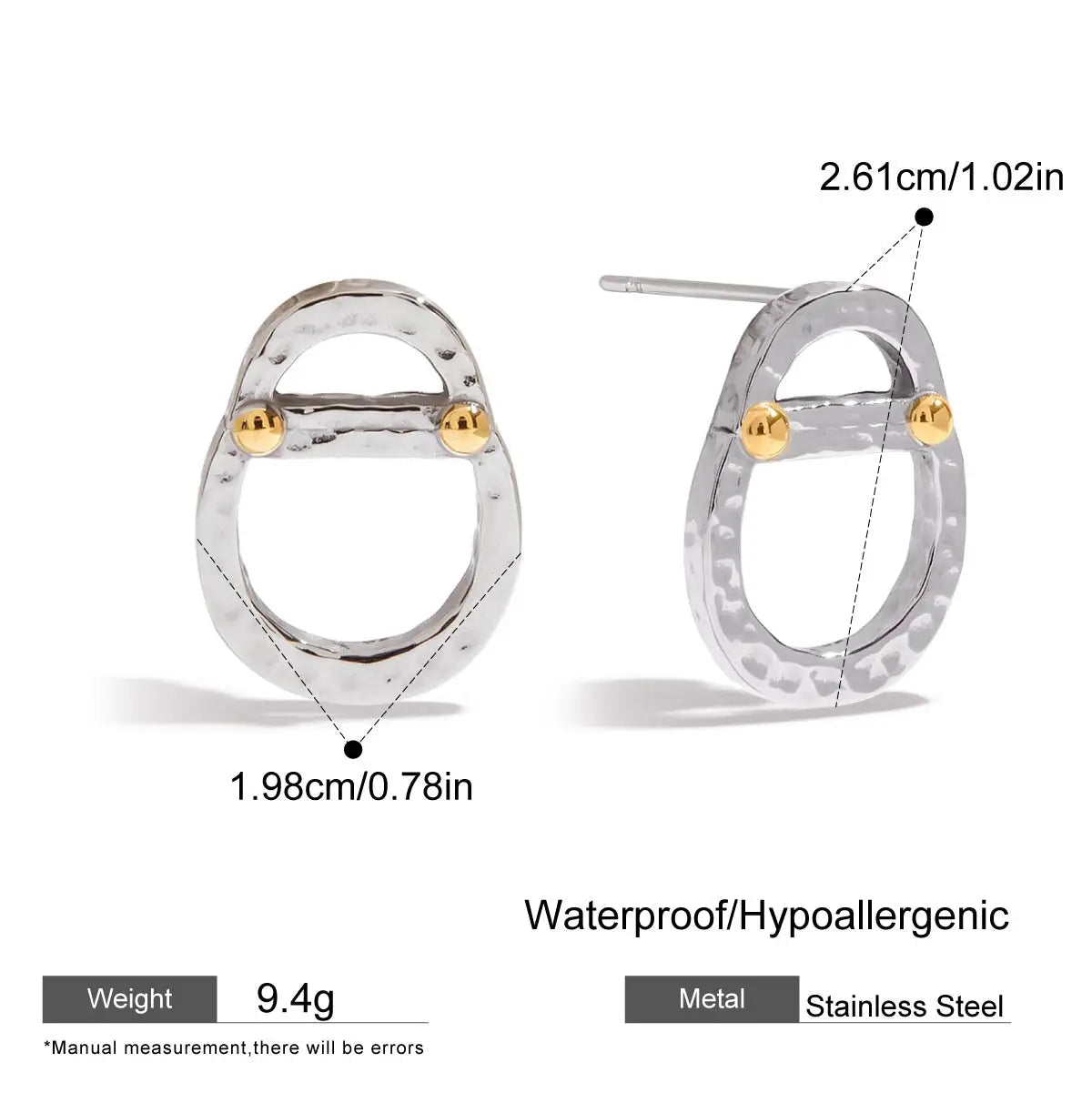 • ピアスのポスト部分は素材の特性上、キャッチがきつく感じられる場合や、スムーズに取り外せないことがありますが、これは不良品ではありませんのでご了承ください。特に新品時はゴールドメッキコーティングの厚みにより、やや固めに感じることがございます。無理に力を加えるとポストの曲がりや破損につながる可能性があるため、優しくゆっくりと着脱いただくことをおすすめします。