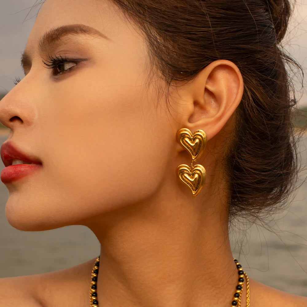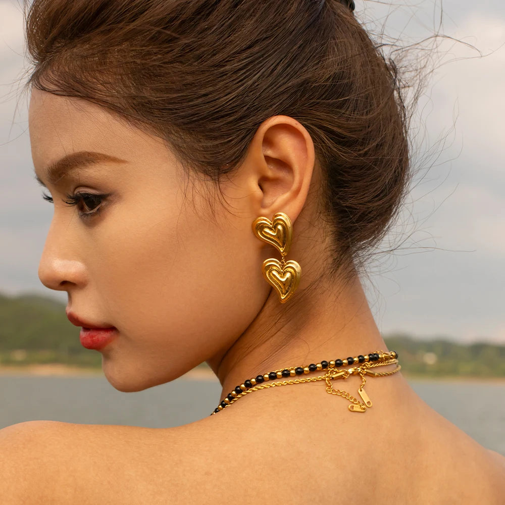 ステンレス304 ニッケルフリー 水に濡れても錆びにくい 18Kゴールドメッキ ピアス ハート 【YJ00285】