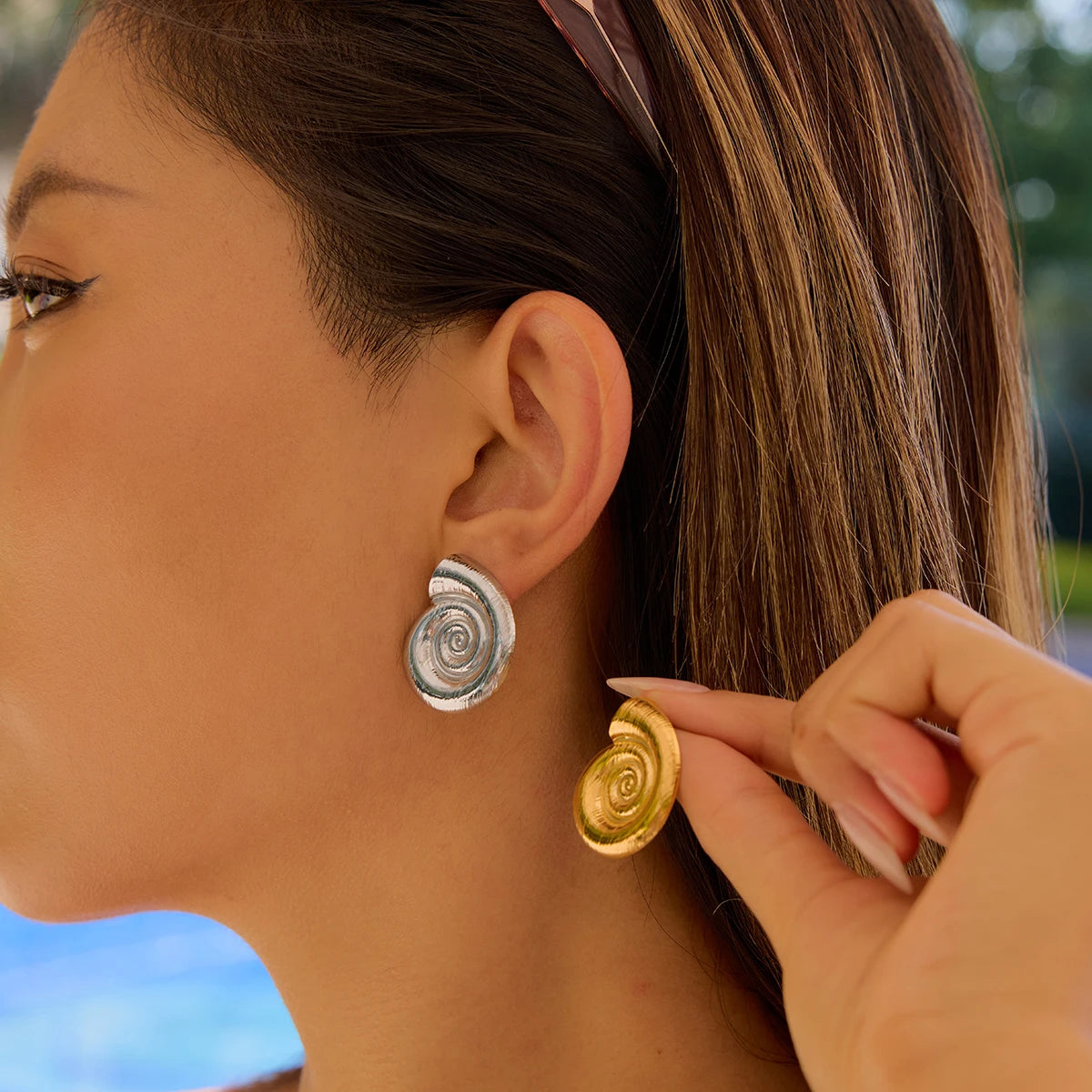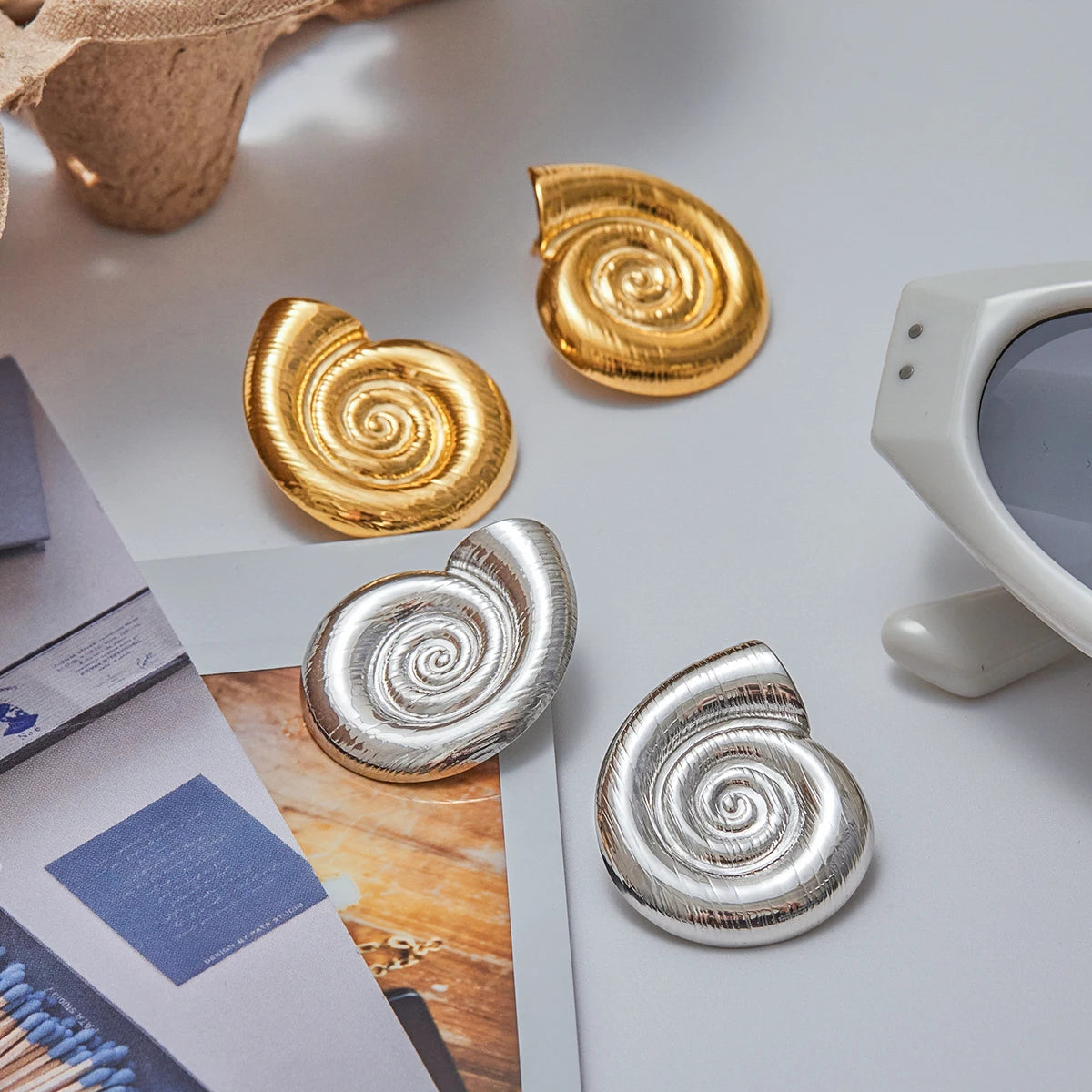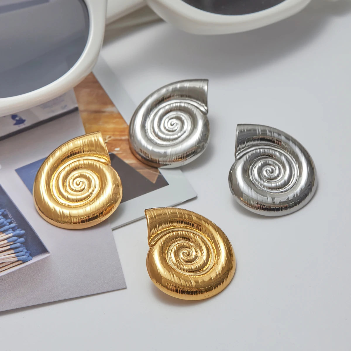 ステンレス304 ニッケルフリー 水に濡れても錆びにくい 18Kゴールドメッキ スパイラル ピアス アンモナイト 【YJ00352】