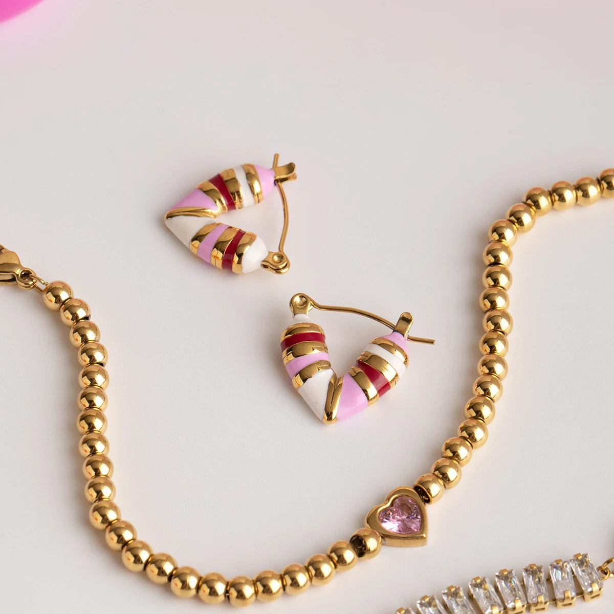 ステンレス304 ニッケルフリー 水に濡れても錆びにくい フープ ピアス ハート エナメル 【YJ00447】