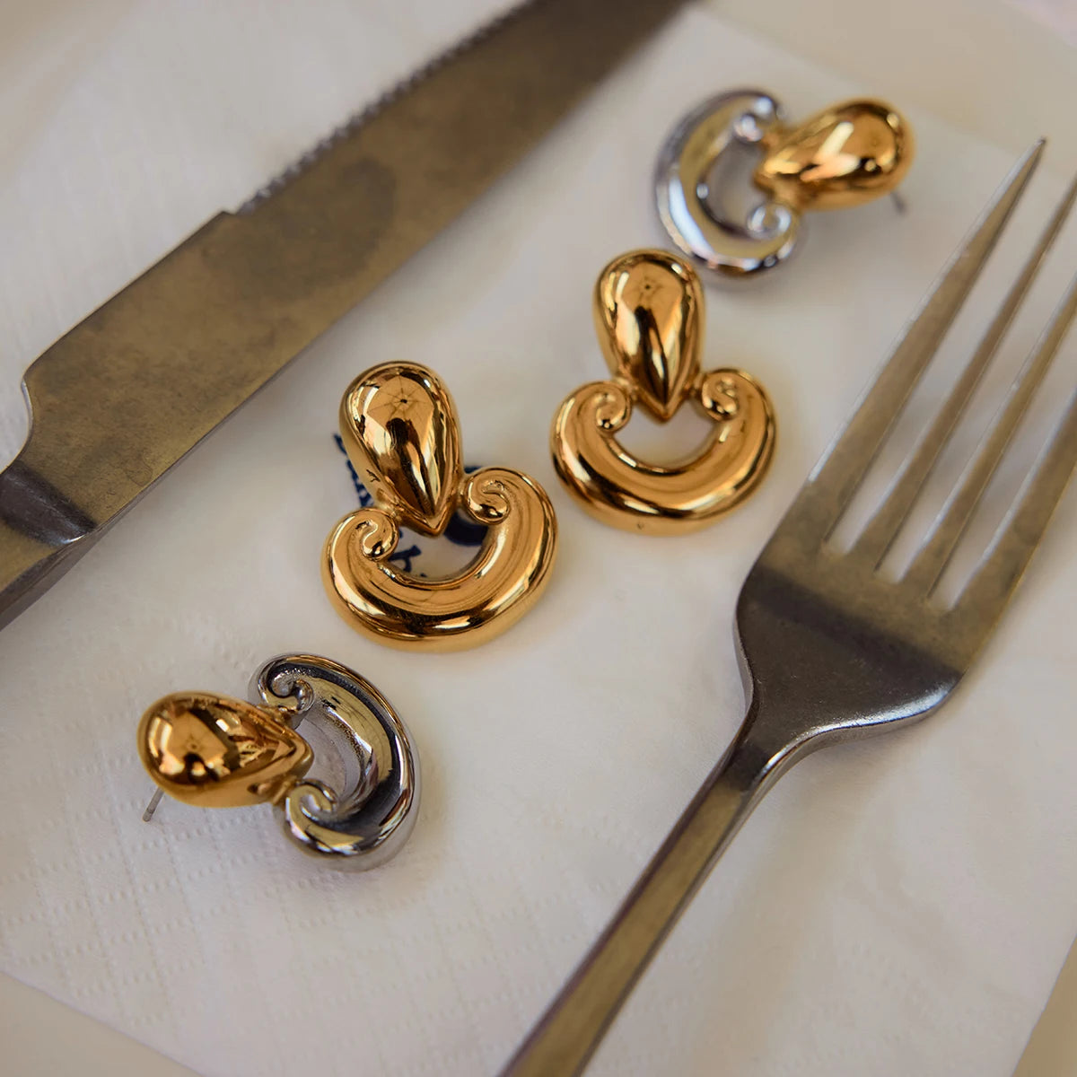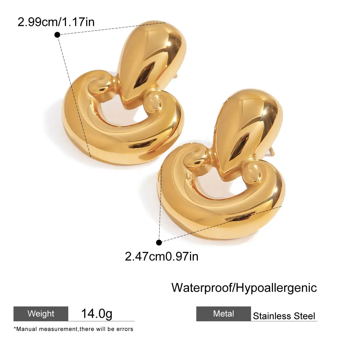 ステンレス304 ニッケルフリー 水に濡れても錆びにくい 18Kゴールドメッキ チャンキー ピアス 【YJ00840】