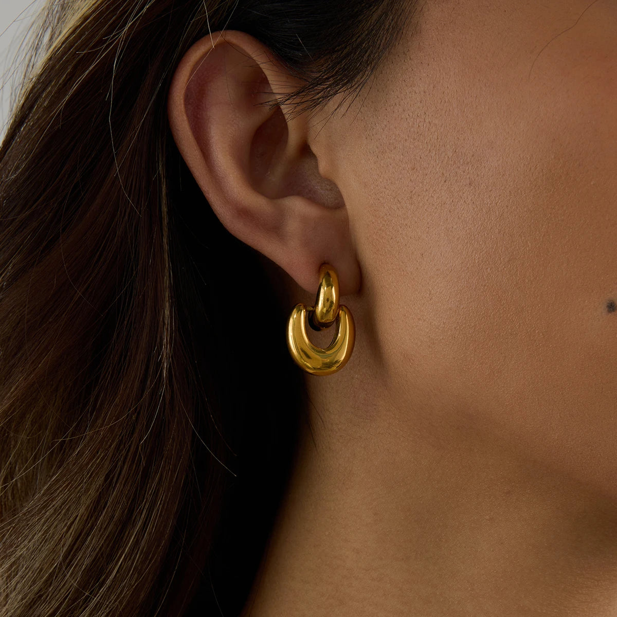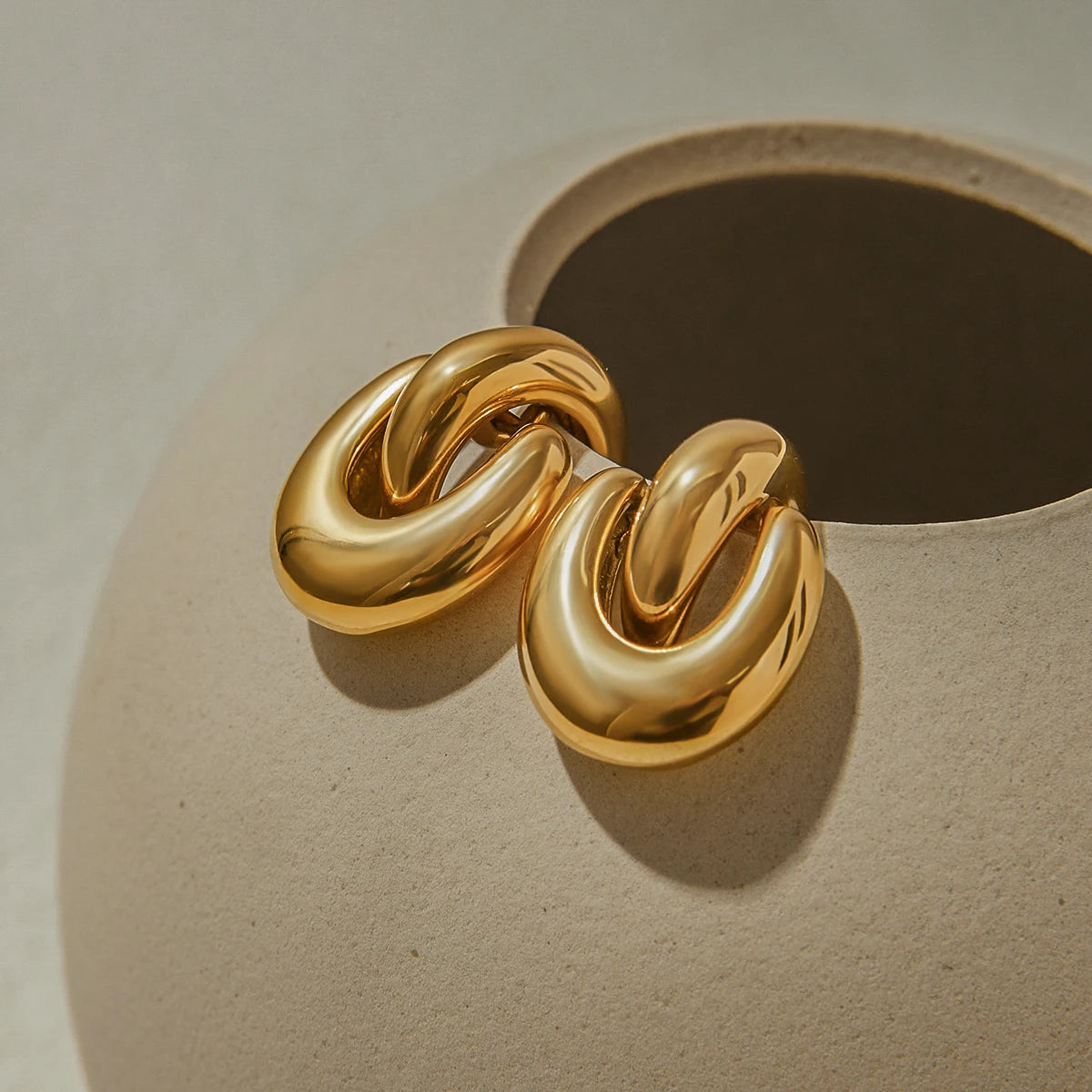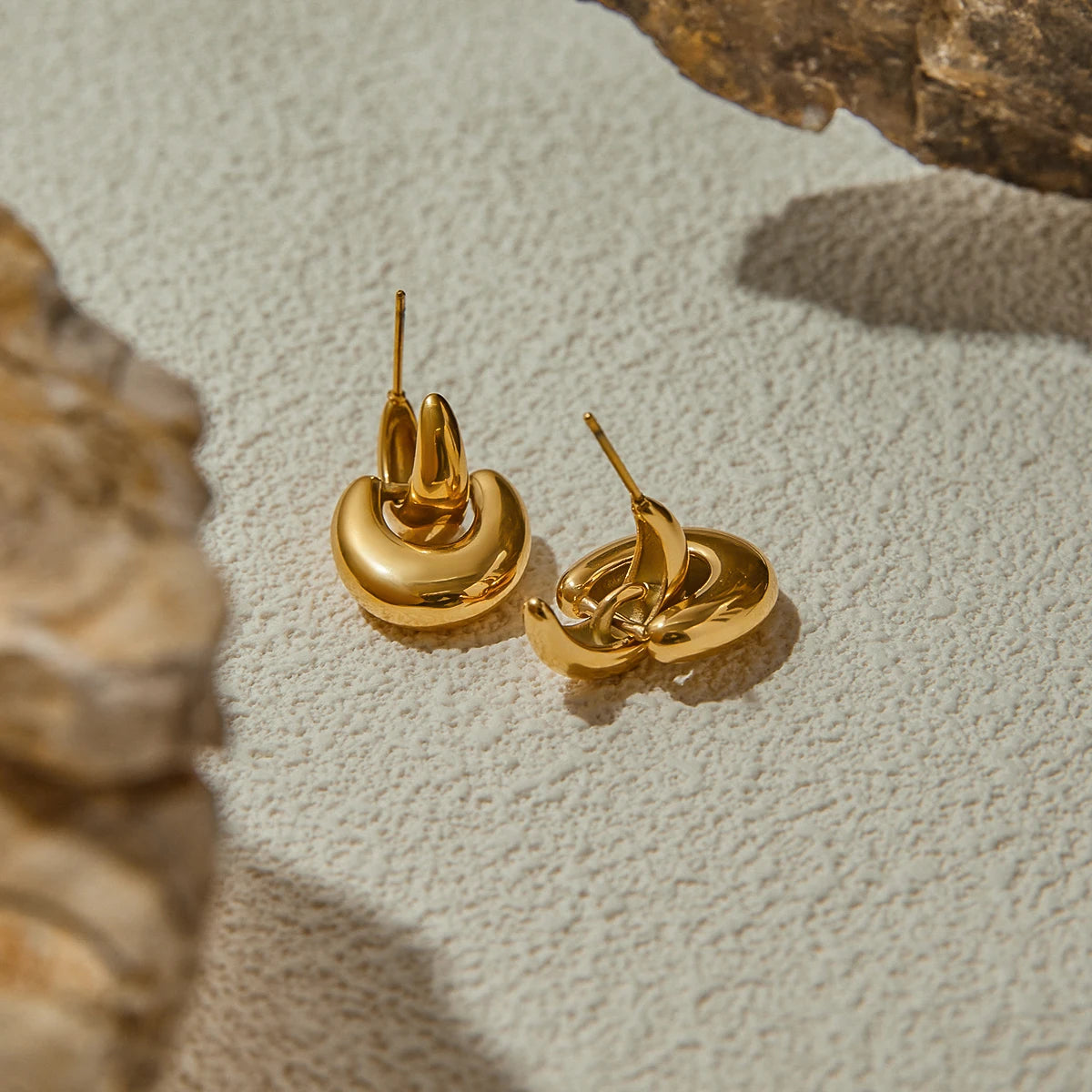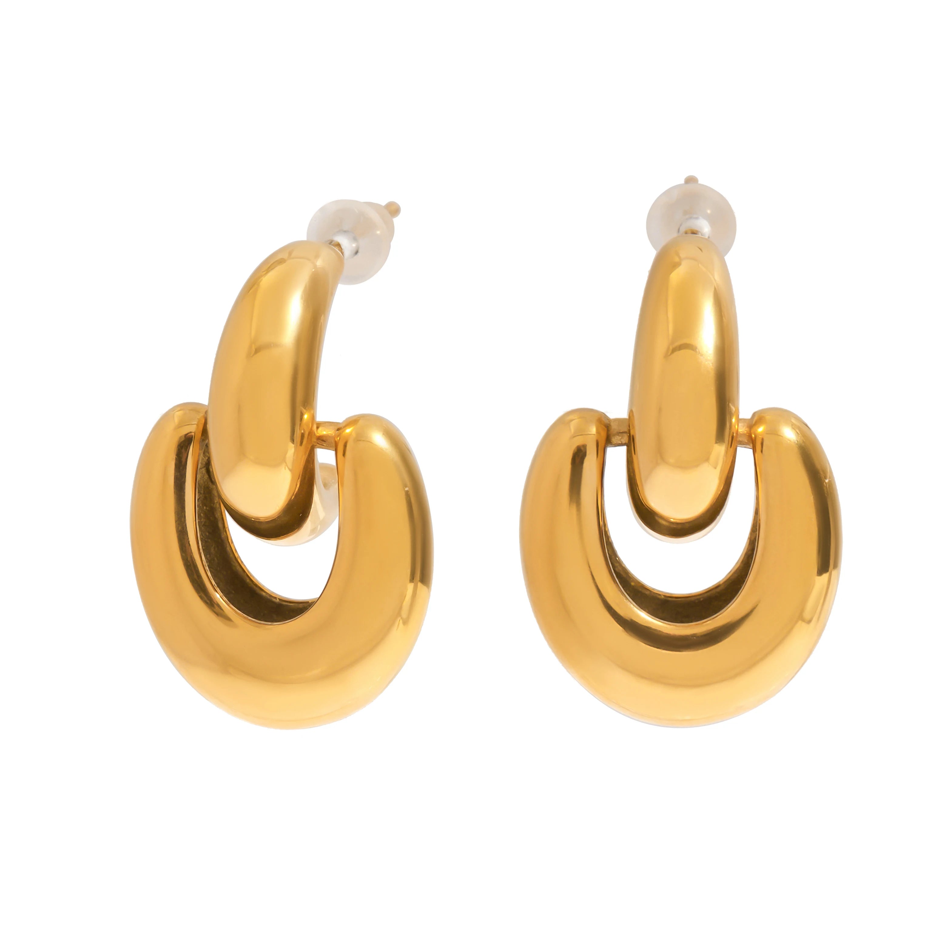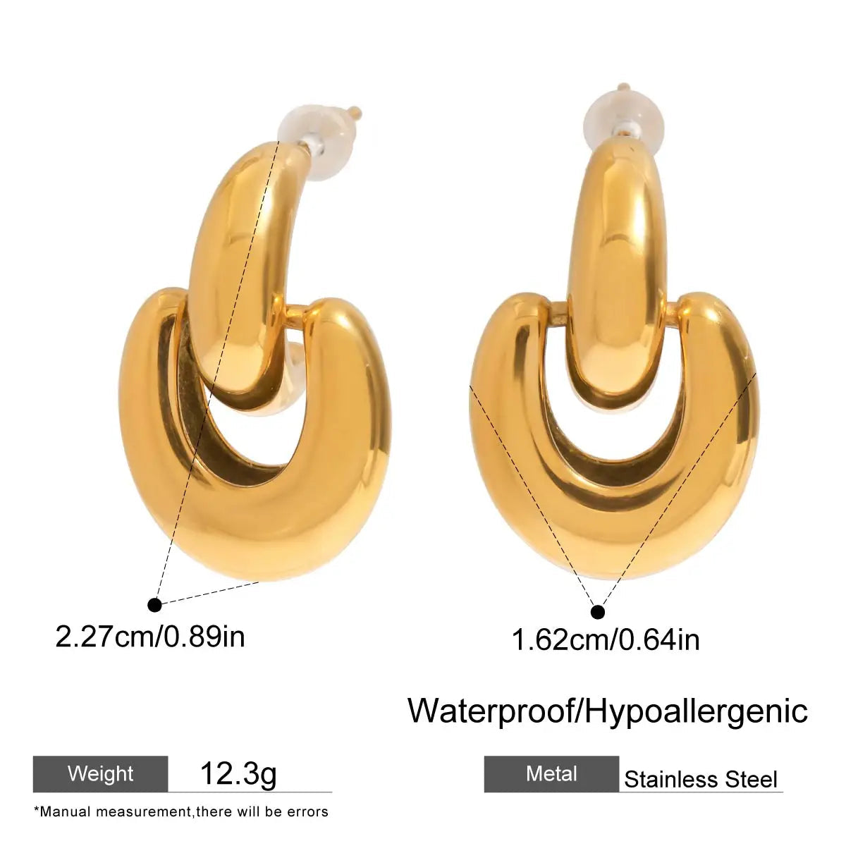 ステンレス304 ニッケルフリー 水に濡れても錆びにくい 18Kゴールドメッキ チャンキー ピアス【YJ00845】