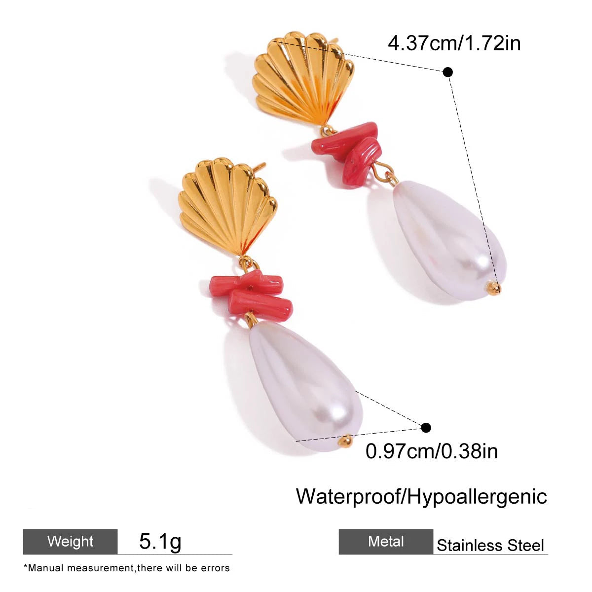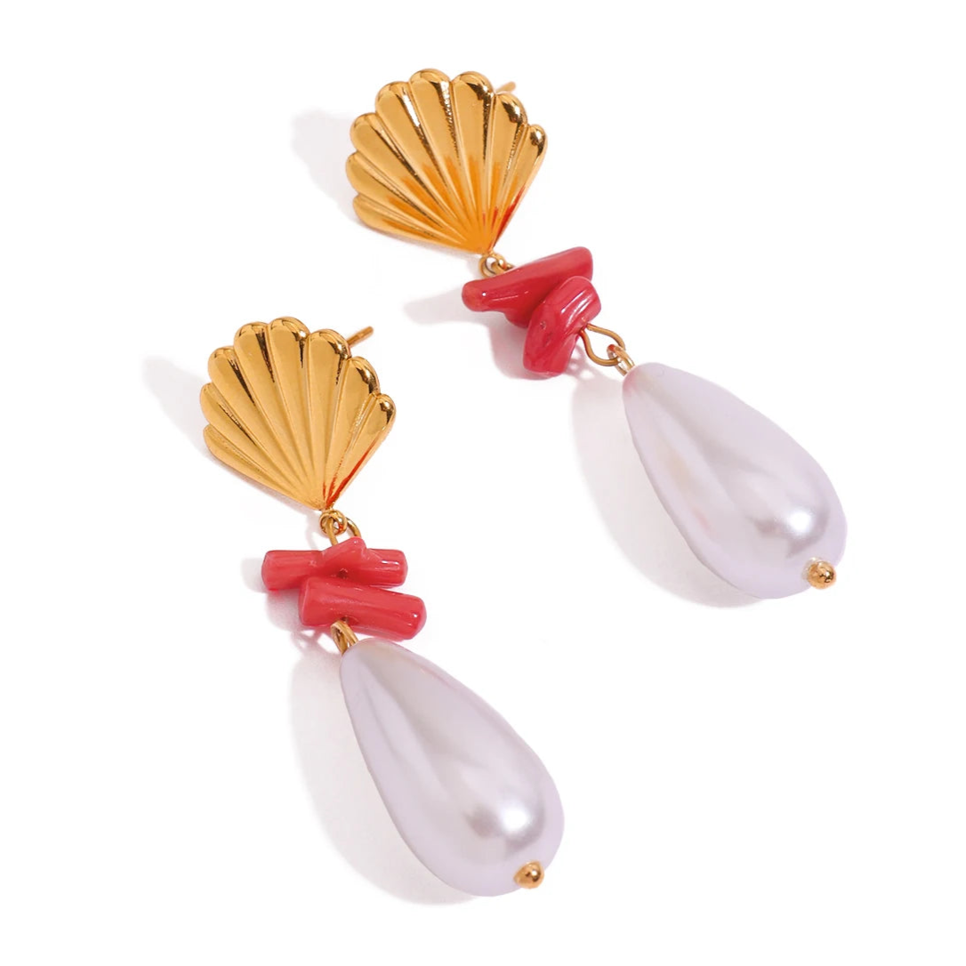 ステンレス304 ニッケルフリー 水に濡れても錆びにくい 18Kゴールドメッキ ピアス シェル 貝殻 パール 【YJ00873】