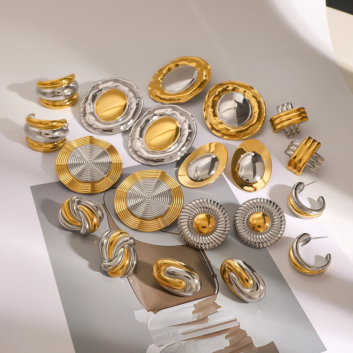 ステンレス304 ニッケルフリー 水に濡れても錆びにくい 18Kゴールドメッキ チャンキー ピアス 【YJ00911】