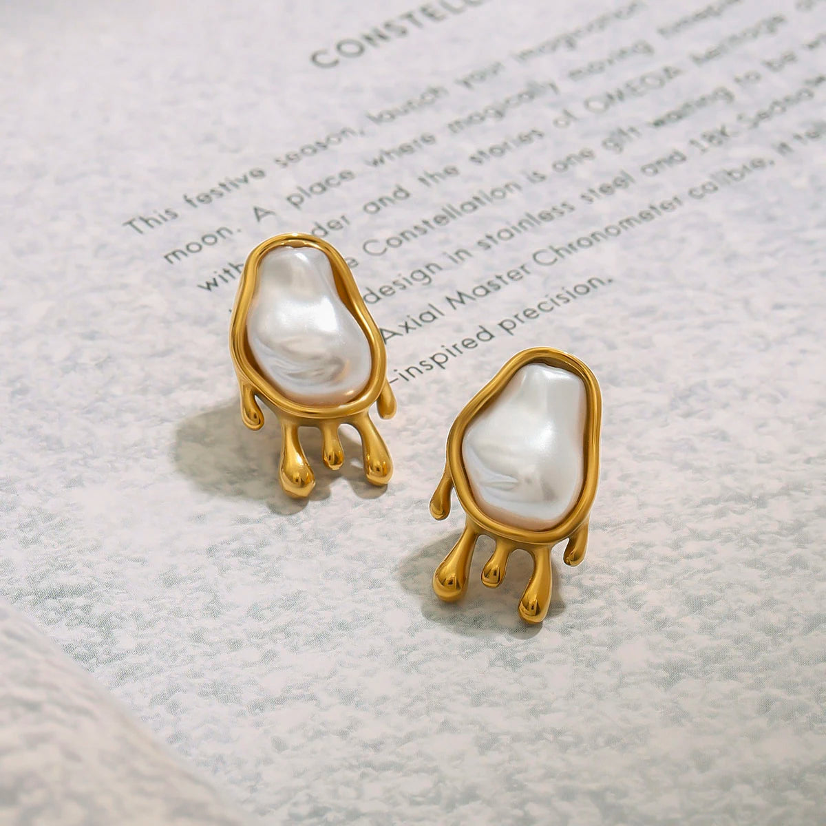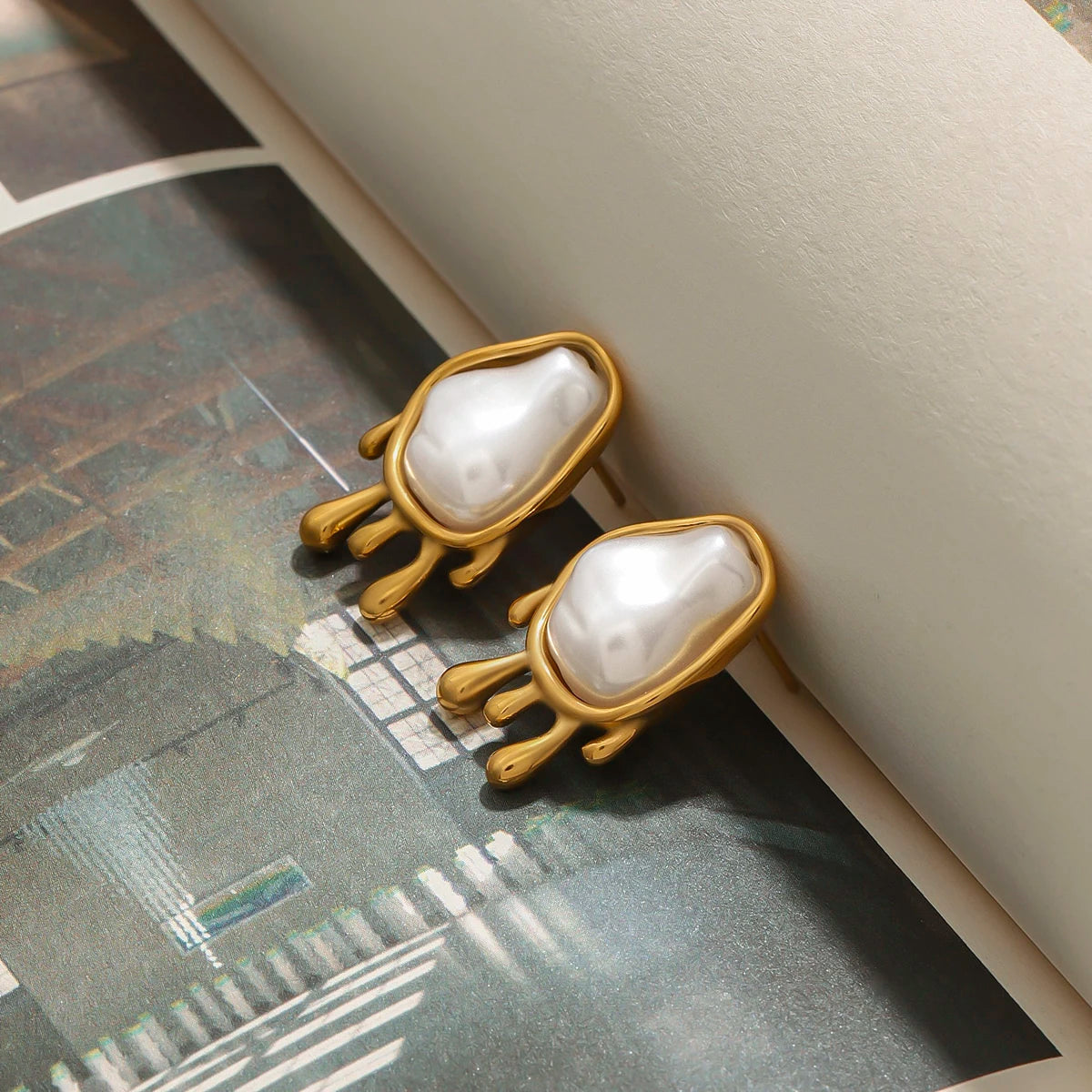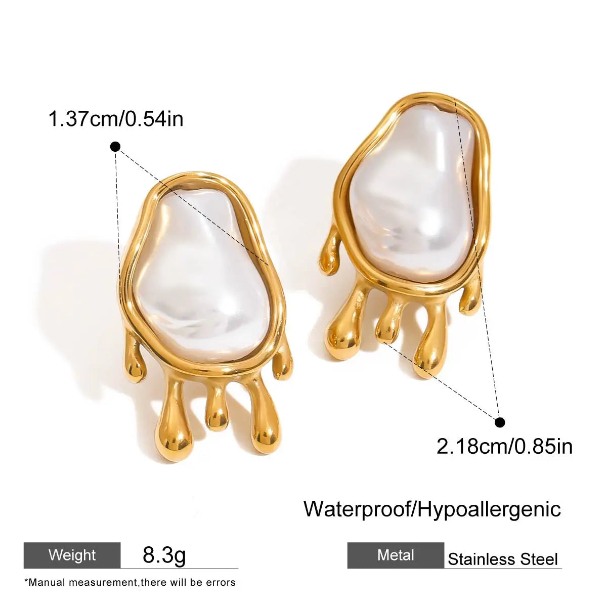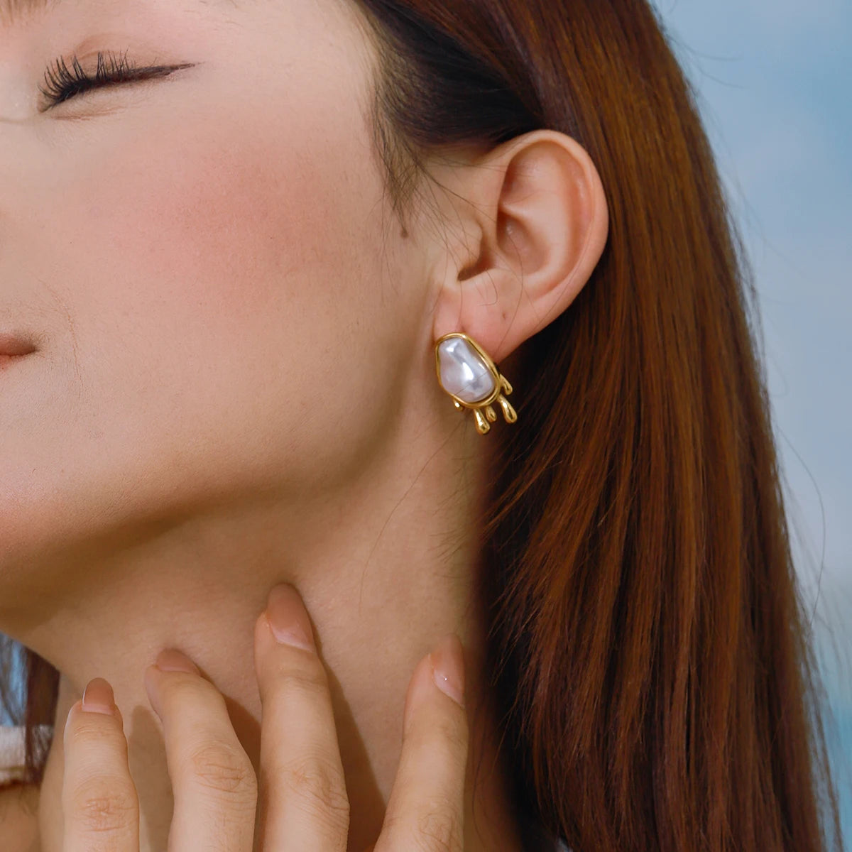 ステンレス304 低ニッケル 水に濡れても錆びにくい 18Kゴールドメッキ ピアス バロックパール 【YJ01223】