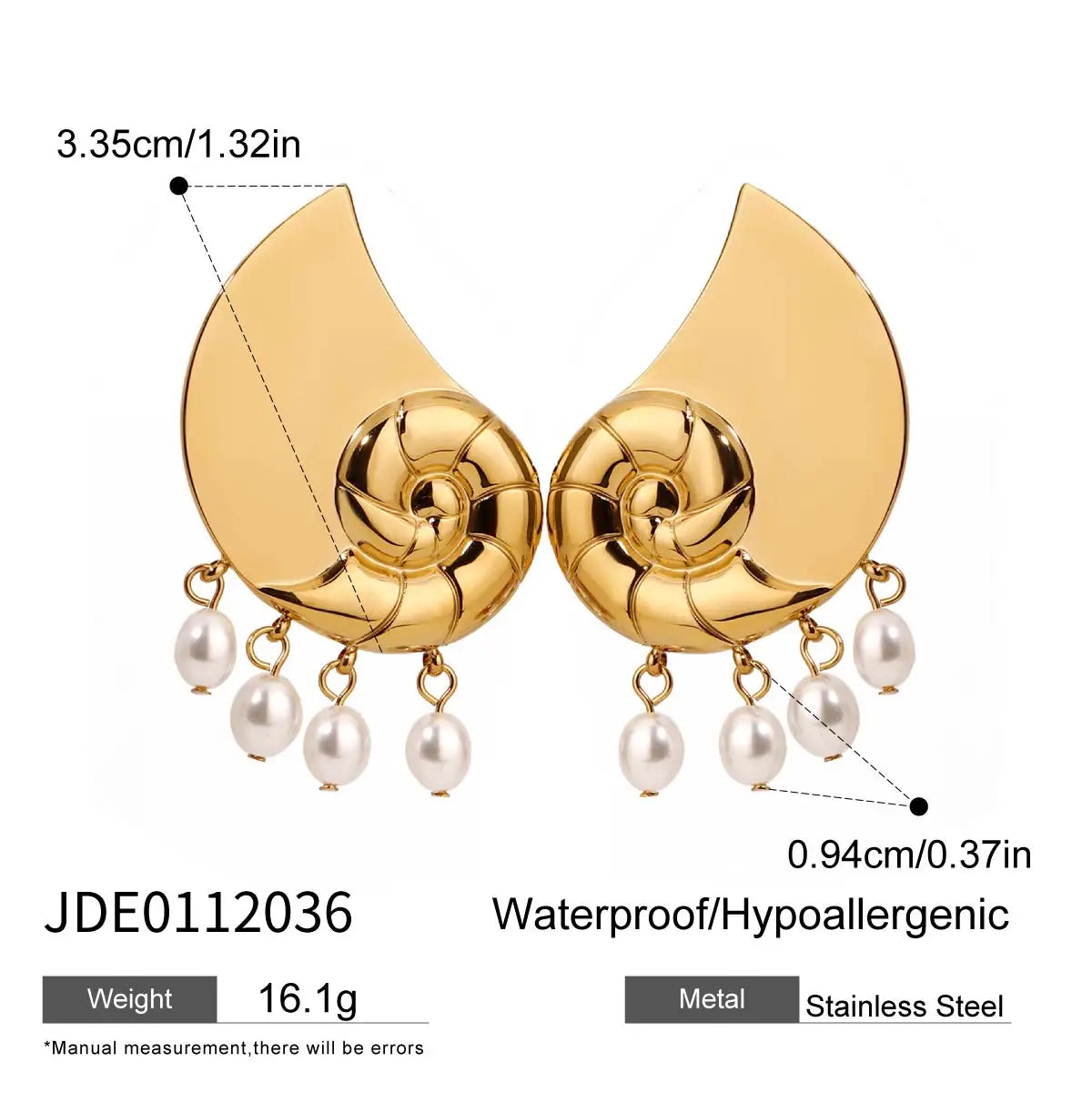 ステンレス304 低ニッケル 水に濡れても錆びにくい 18Kゴールドメッキ ピアス スパイラル パール 【YJ01286】