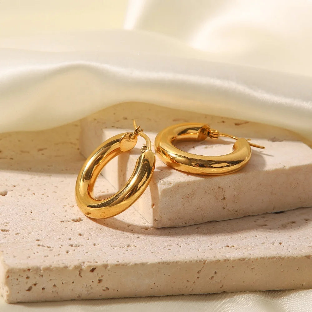 ステンレス304 低ニッケル 水に濡れても錆びにくい 18Kゴールドメッキ ピアス チャンキー フープ 【YJ01359】