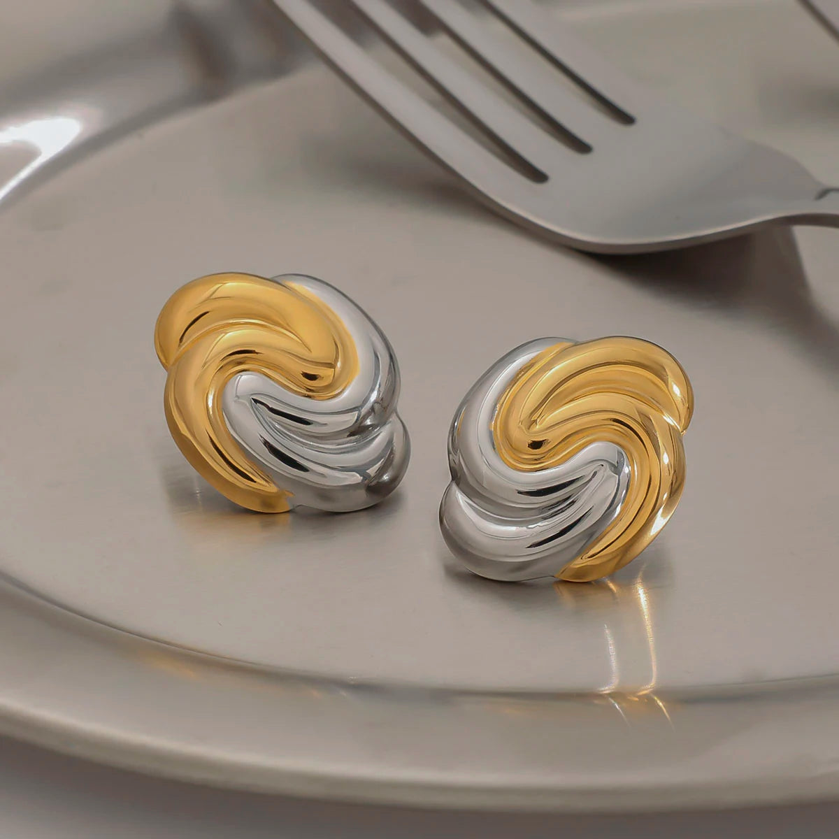 ステンレス304 低ニッケル 水に濡れても錆びにくい 18Kゴールドメッキ ピアス チャンキー 【YJ01374】