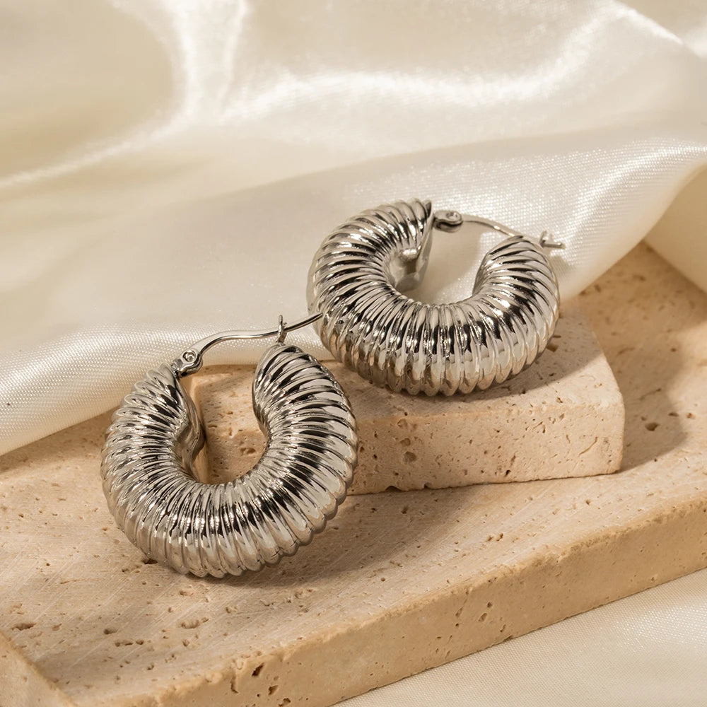 ステンレス304 低ニッケル 水に濡れても錆びにくい ピアス チャンキー フープ ツイスト 【YJ01396】