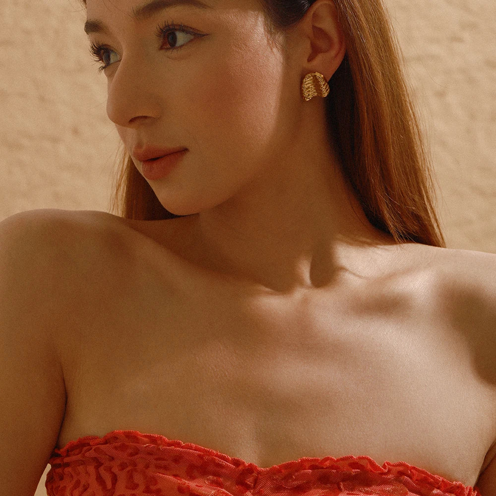 - ピアスのポスト部分は素材の特性上、キャッチがきつく感じられる場合や、スムーズに取り外せないことがありますが、これは不良品ではありませんのでご了承ください。特に新品時はゴールドメッキコーティングの厚みにより、やや固めに感じることがございます。無理に力を加えるとポストの曲がりや破損につながる可能性があるため、優しくゆっくりと着脱いただくことをおすすめします。