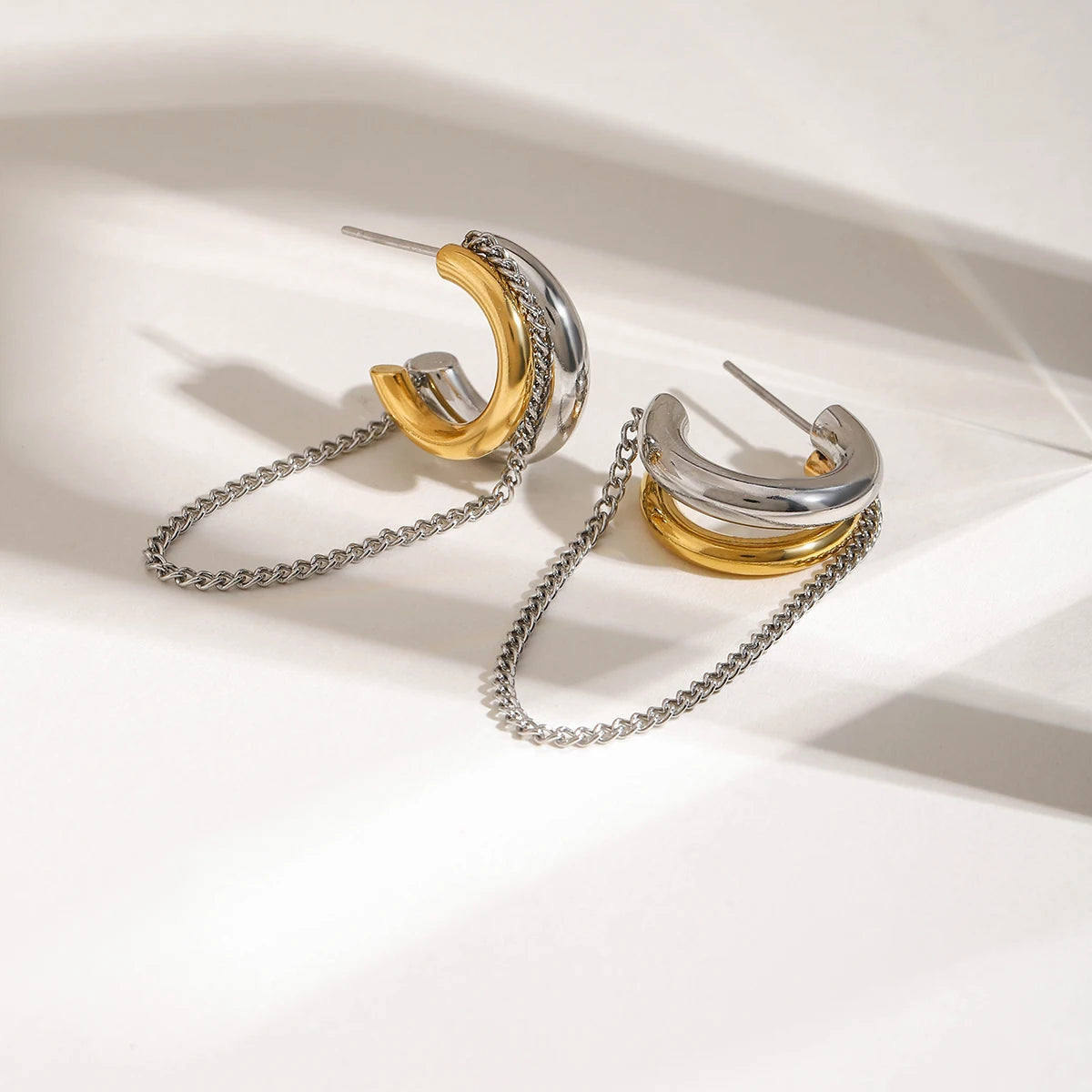 ステンレス304 低ニッケル 水に濡れても錆びにくい 18Kゴールドメッキ ピアス チェーン 【YJ01403】