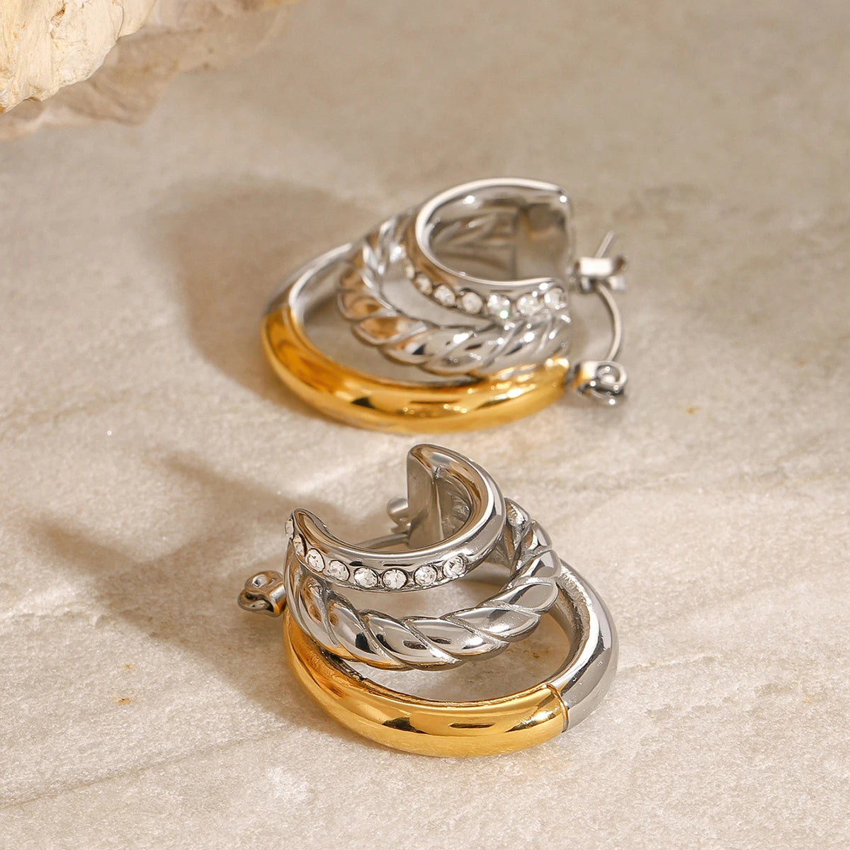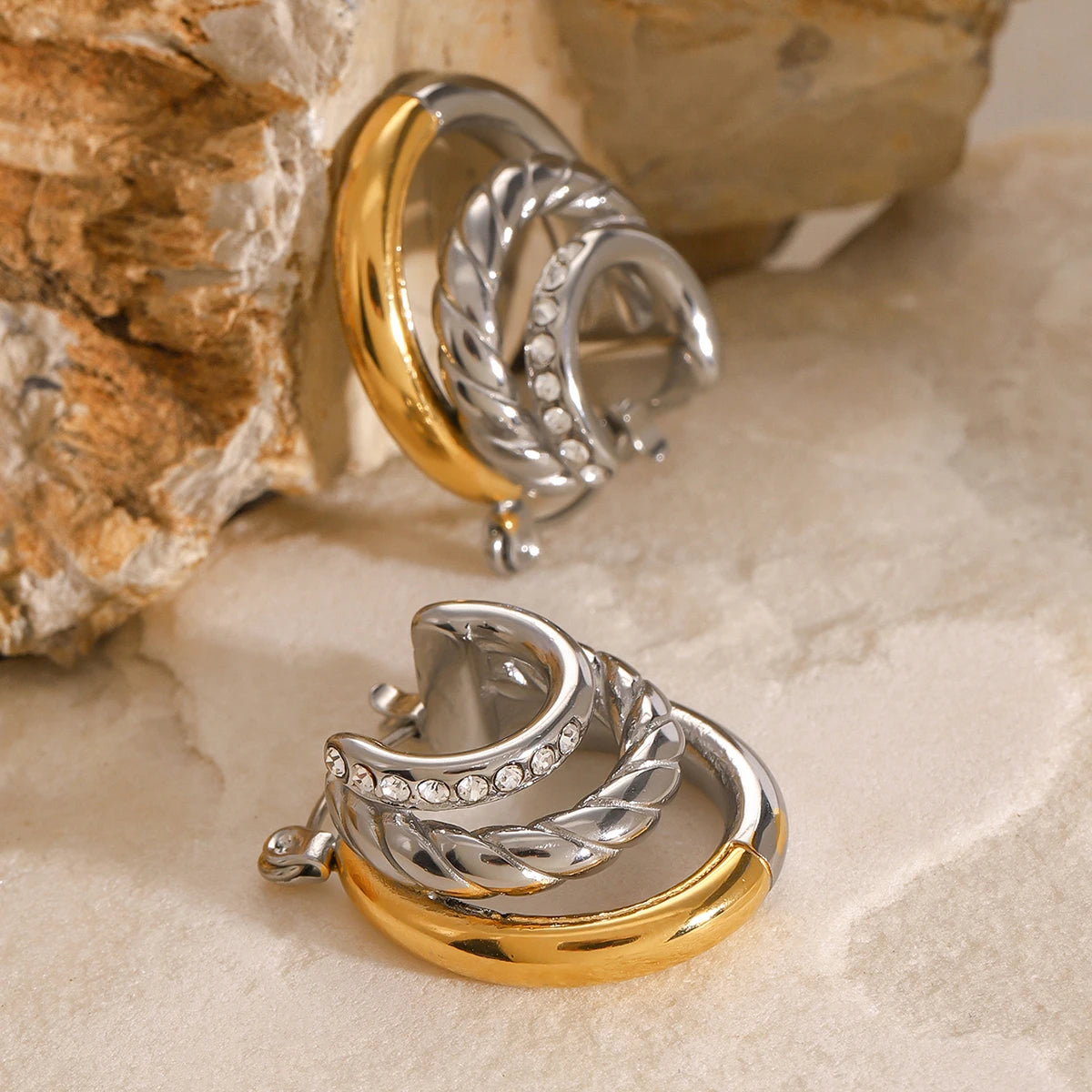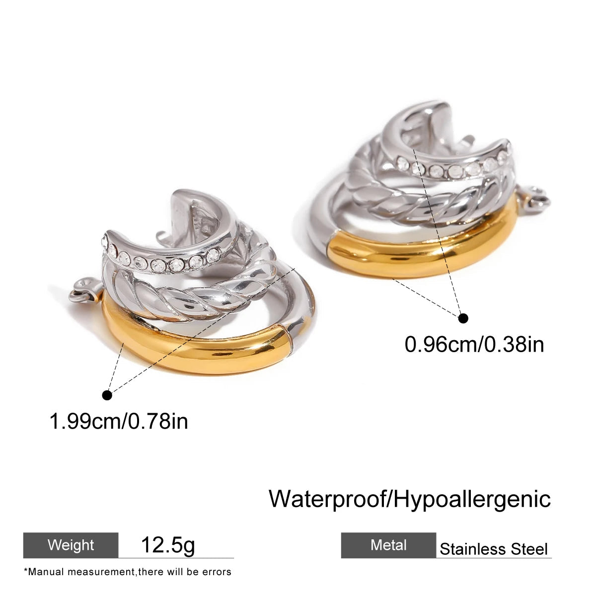 ステンレス304 低ニッケル 水に濡れても錆びにくい 18Kゴールドメッキ ピアス フープ ツイスト ジルコニア 【YJ01425】