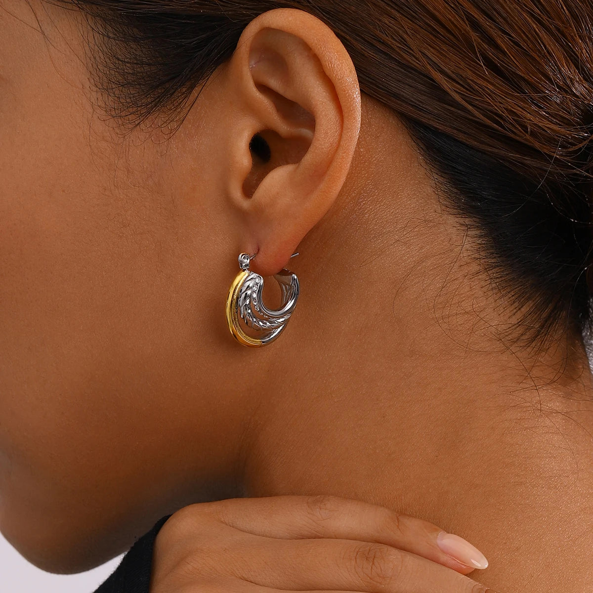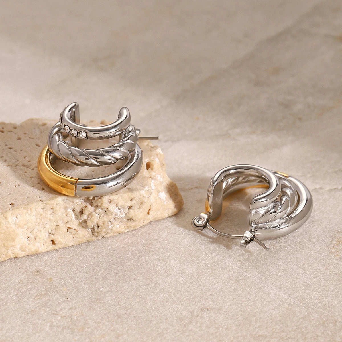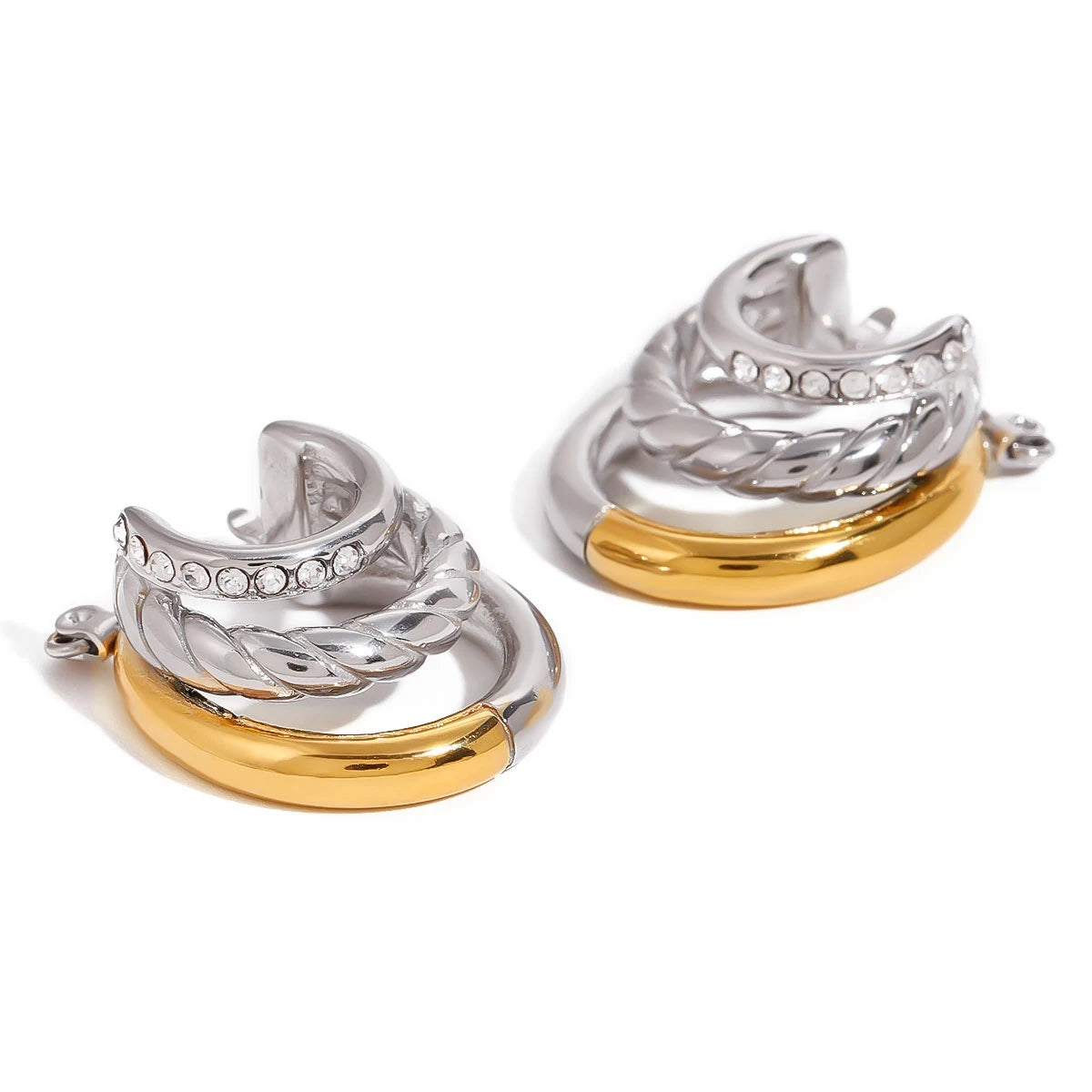 ステンレス304 低ニッケル 水に濡れても錆びにくい 18Kゴールドメッキ ピアス フープ ツイスト ジルコニア 【YJ01425】