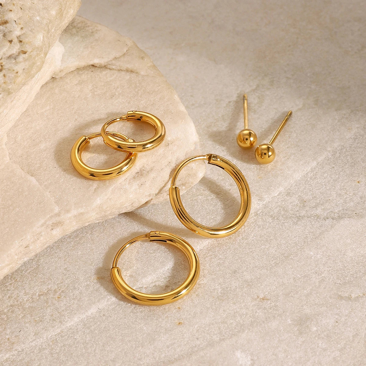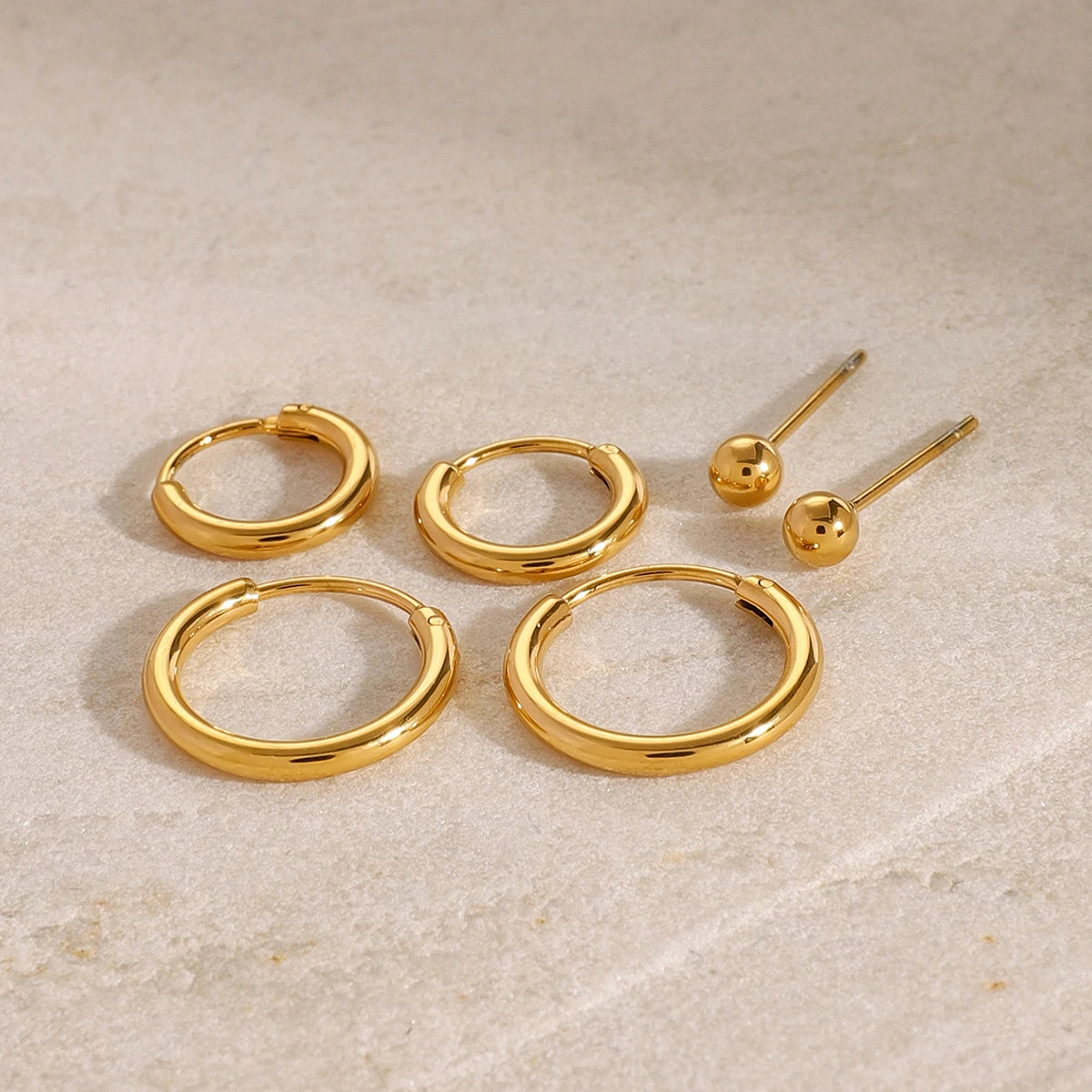 ステンレス304 低ニッケル 水に濡れても錆びにくい 18Kゴールドメッキ ピアス フープ 3点セット【YJ01433】