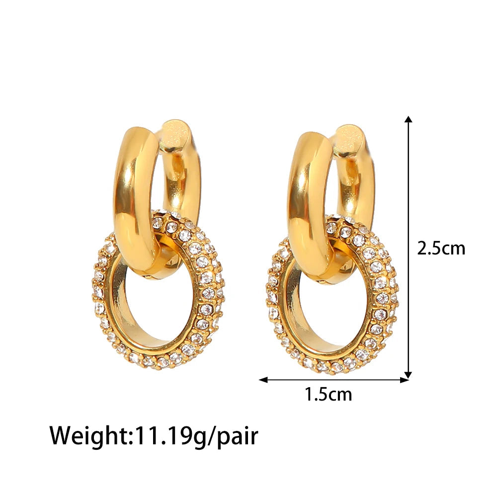 ステンレス304 低ニッケル 水に濡れても錆びにくい 18Kゴールドメッキ ピアス フープ ジルコニア 【YJ01534】