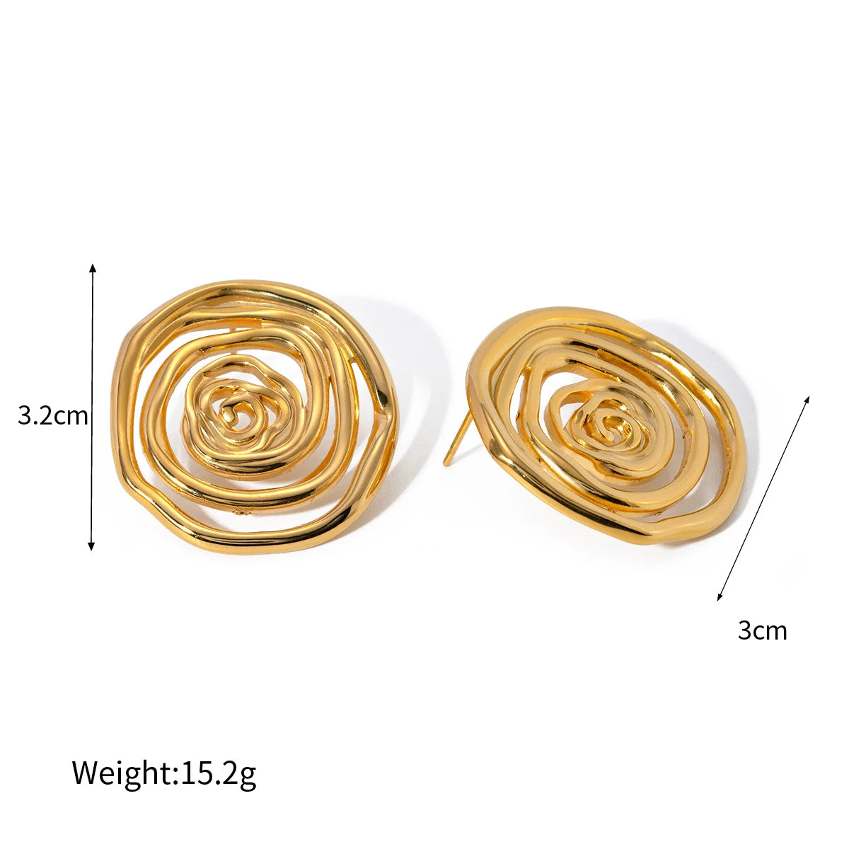 ステンレス304 低ニッケル 水に濡れても錆びにくい 18Kゴールドメッキ ピアス スパイラル 【YJ01596】