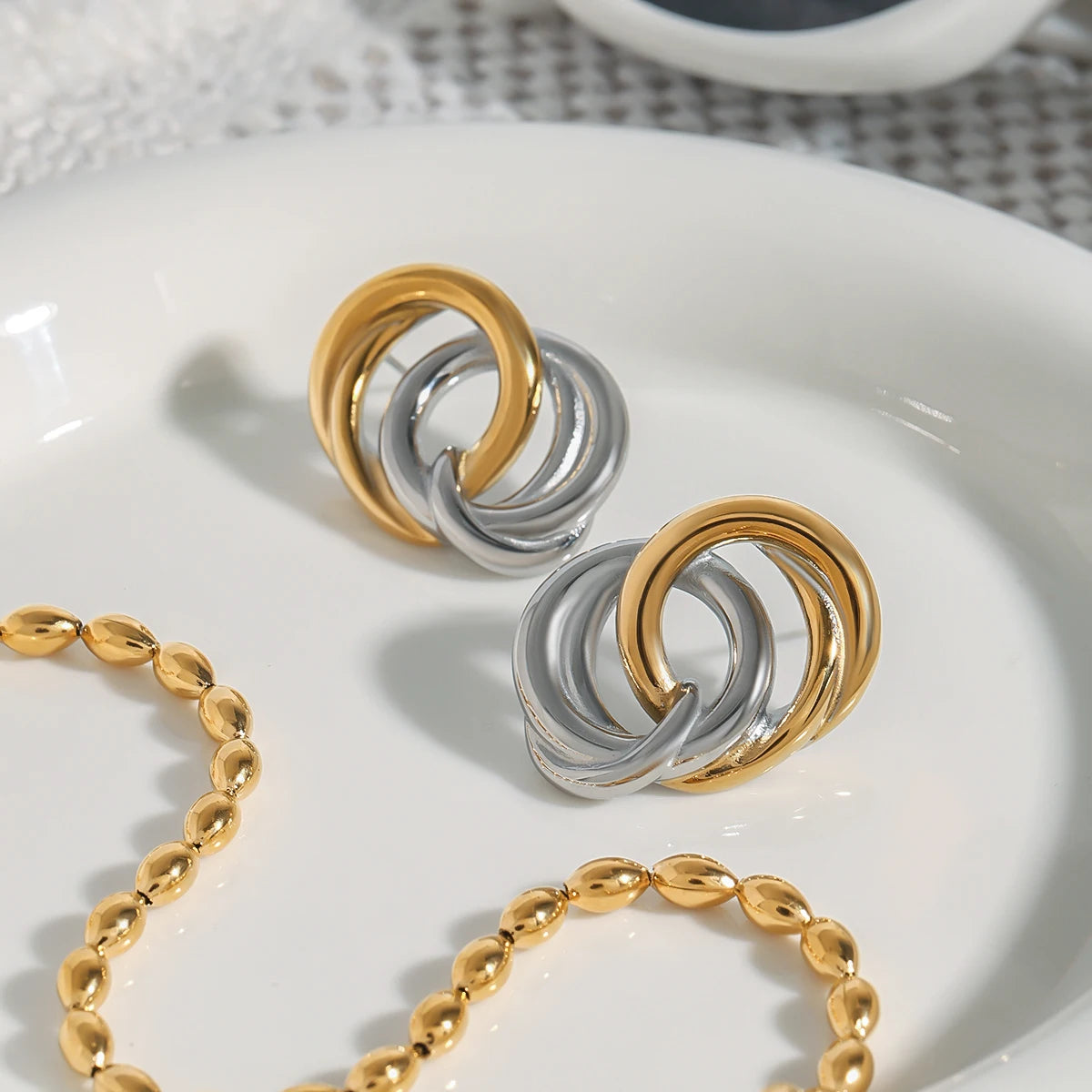 - ピアスのポスト部分は素材の特性上、キャッチがきつく感じられる場合や、スムーズに取り外せないことがありますが、これは不良品ではありませんのでご了承ください。特に新品時はゴールドメッキコーティングの厚みにより、やや固めに感じることがございます。無理に力を加えるとポストの曲がりや破損につながる可能性があるため、優しくゆっくりと着脱いただくことをおすすめします。