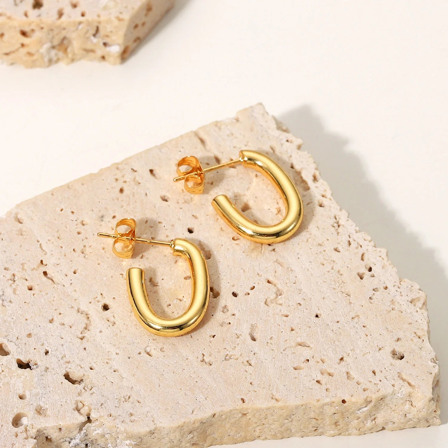ステンレス304 低ニッケル 水に濡れても錆びにくい 18Kゴールドメッキ ピアス フープ 【YJ01657】