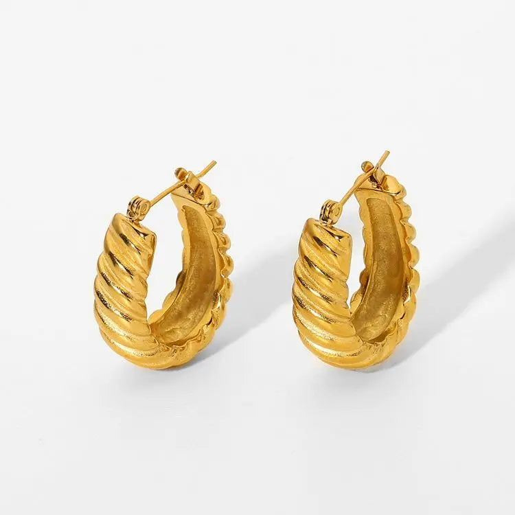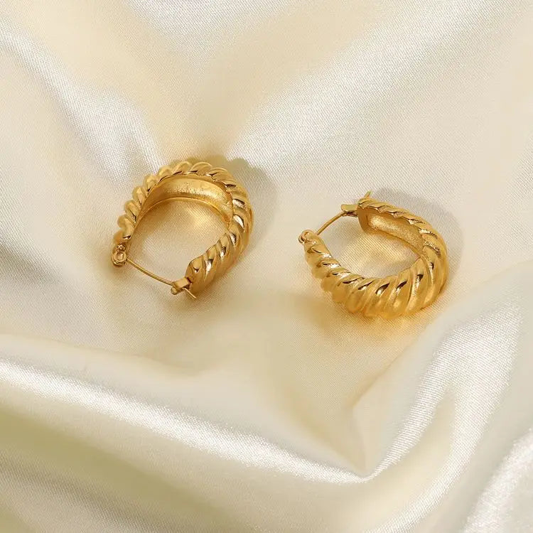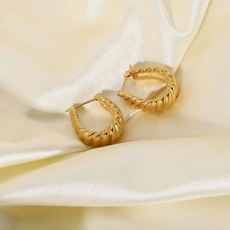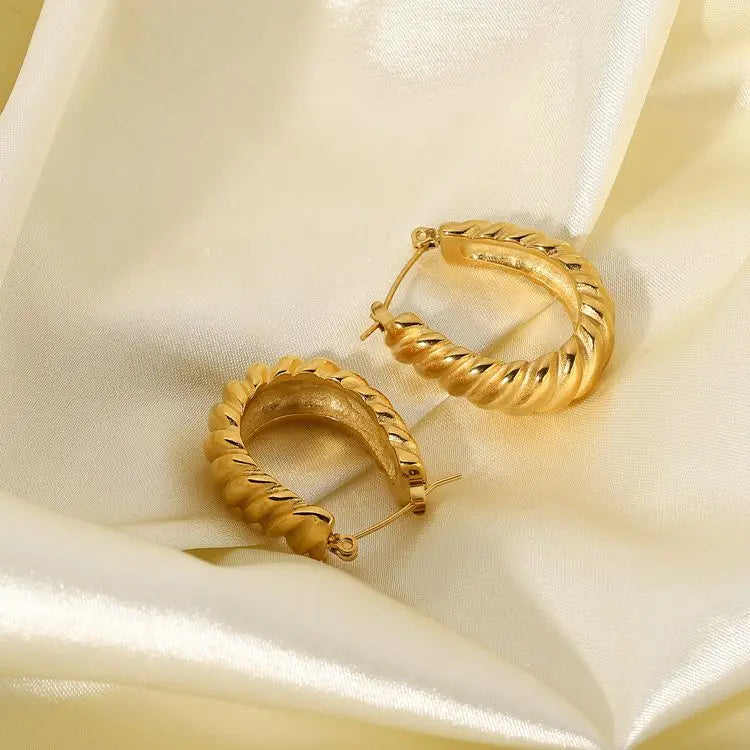 ステンレス304 低ニッケル 水に濡れても錆びにくい 18Kゴールドメッキ ピアス フープ ツイスト 【YJ01677】