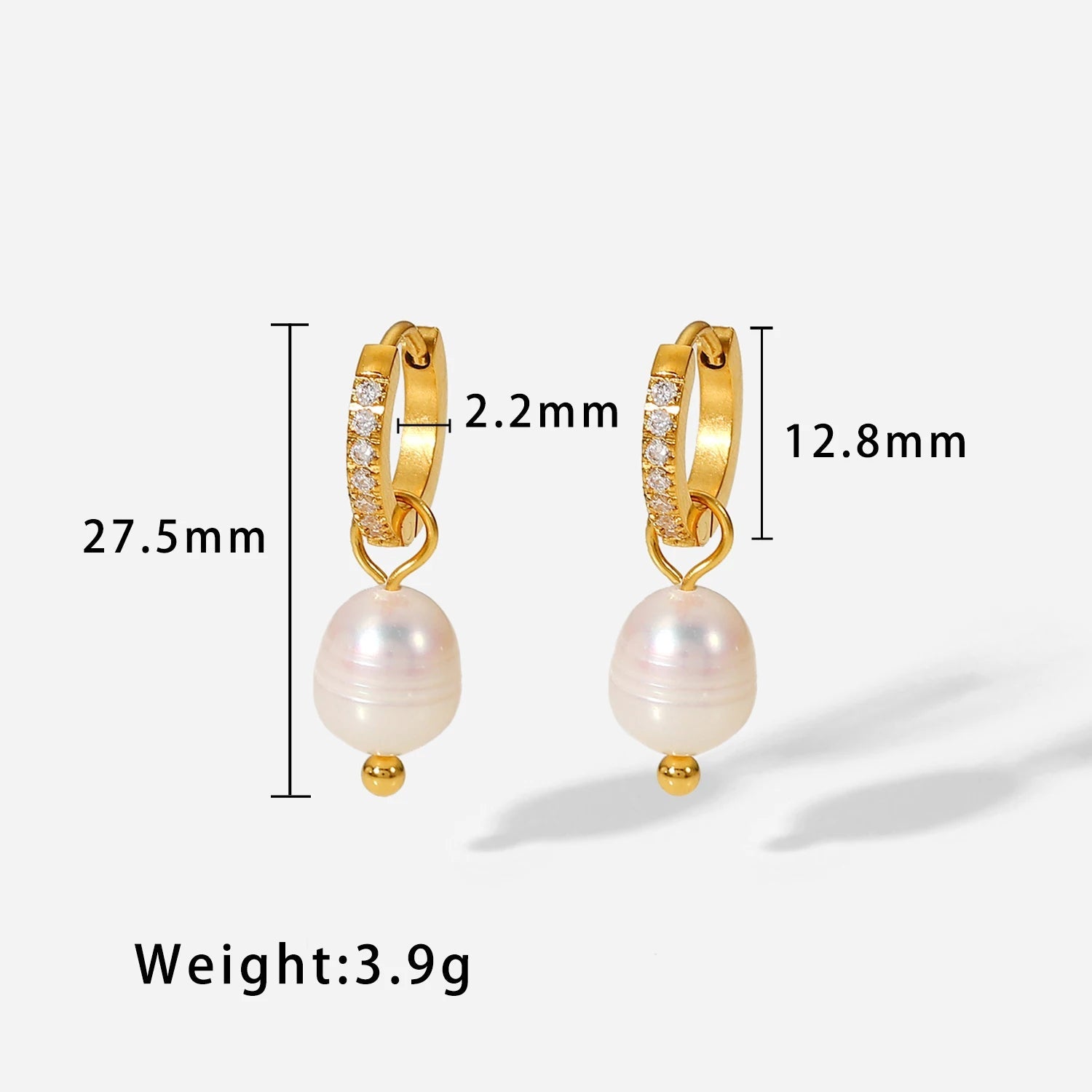 ステンレス304 低ニッケル 水に濡れても錆びにくい 18Kゴールドメッキ ピアス フープ ジルコニア バロックパール 【YJ01696】