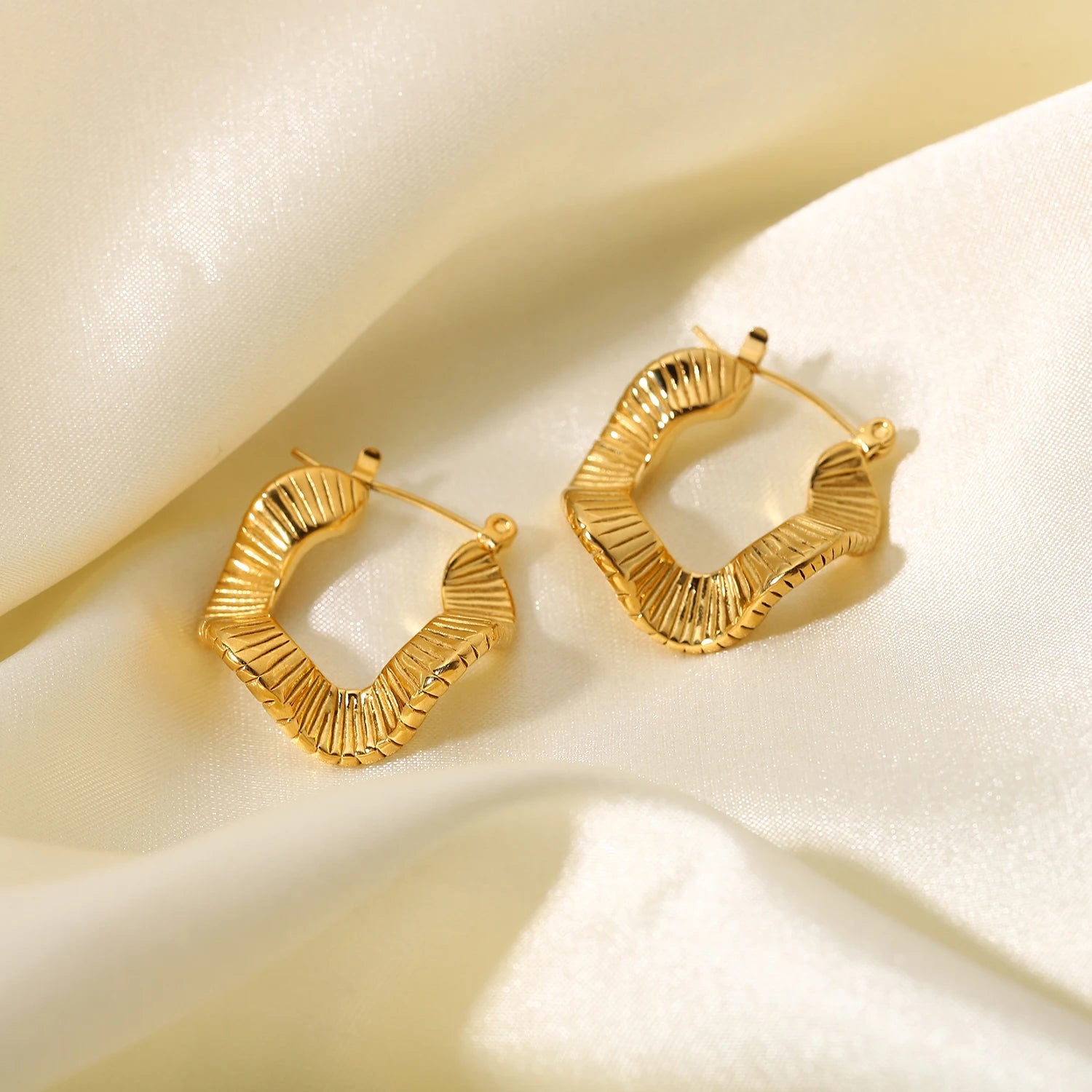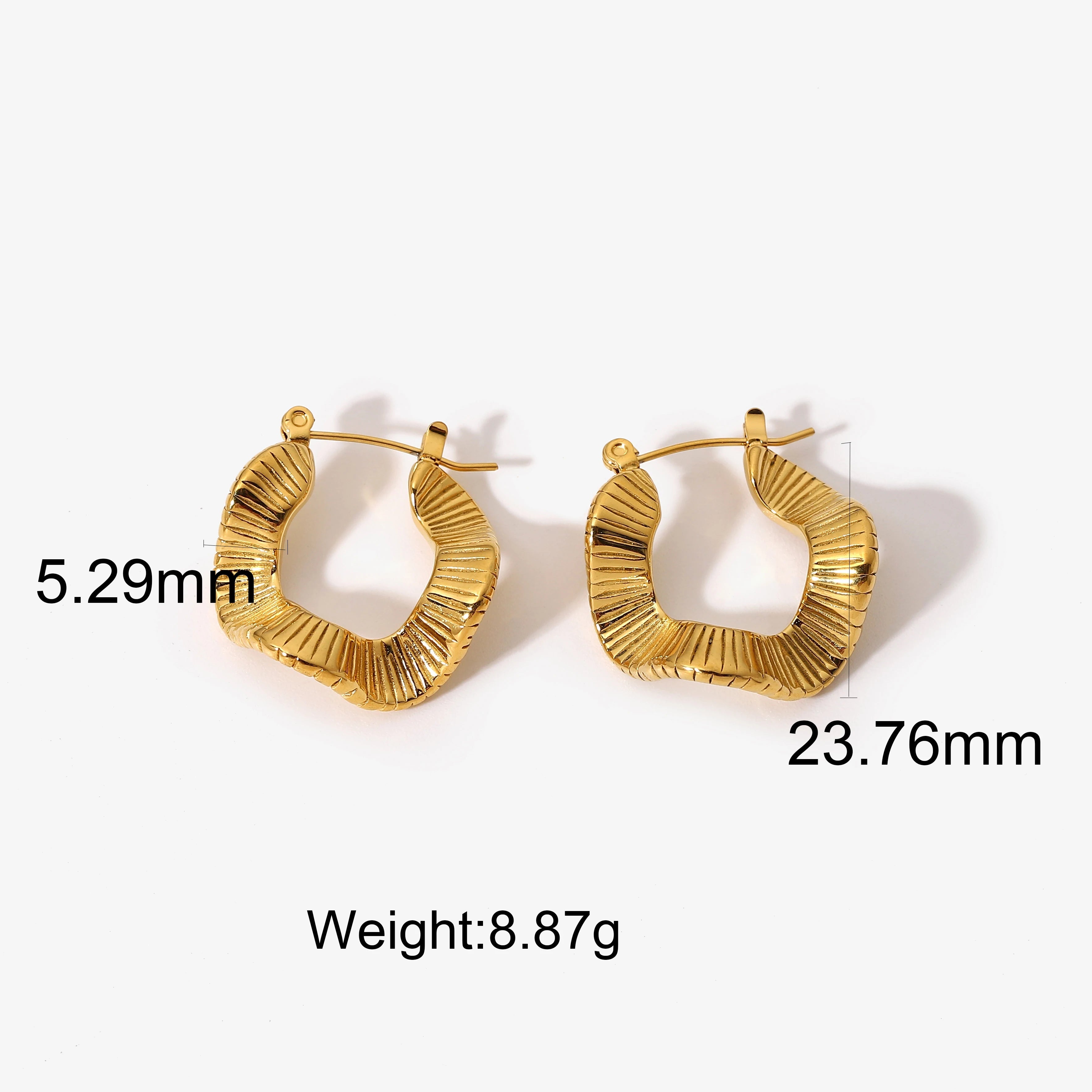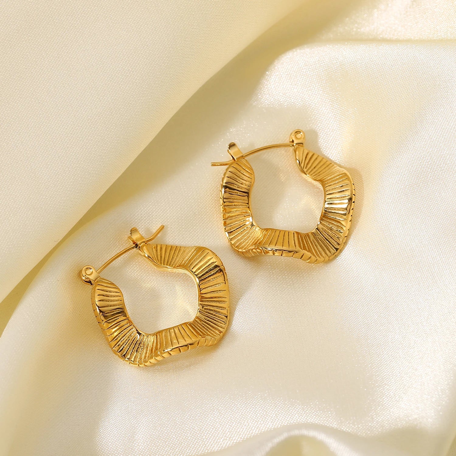 ステンレス304 低ニッケル 水に濡れても錆びにくい 18Kゴールドメッキ ピアス ウェーブ フープ 【YJ01742】