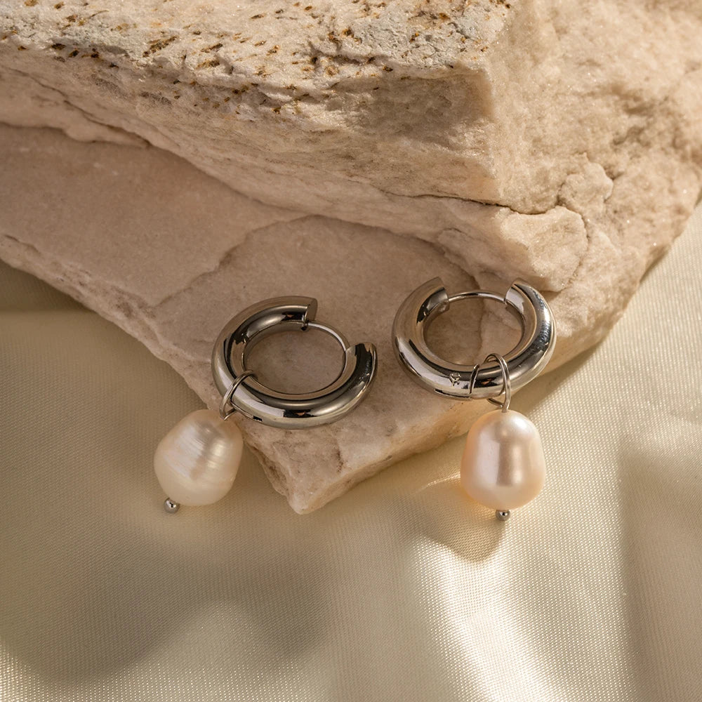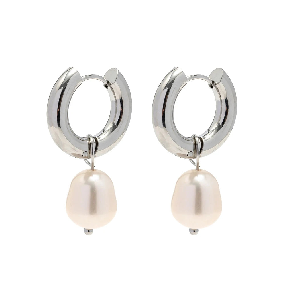 ステンレス304 低ニッケル 水に濡れても錆びにくい ピアス フープ パール 【YJ01784】