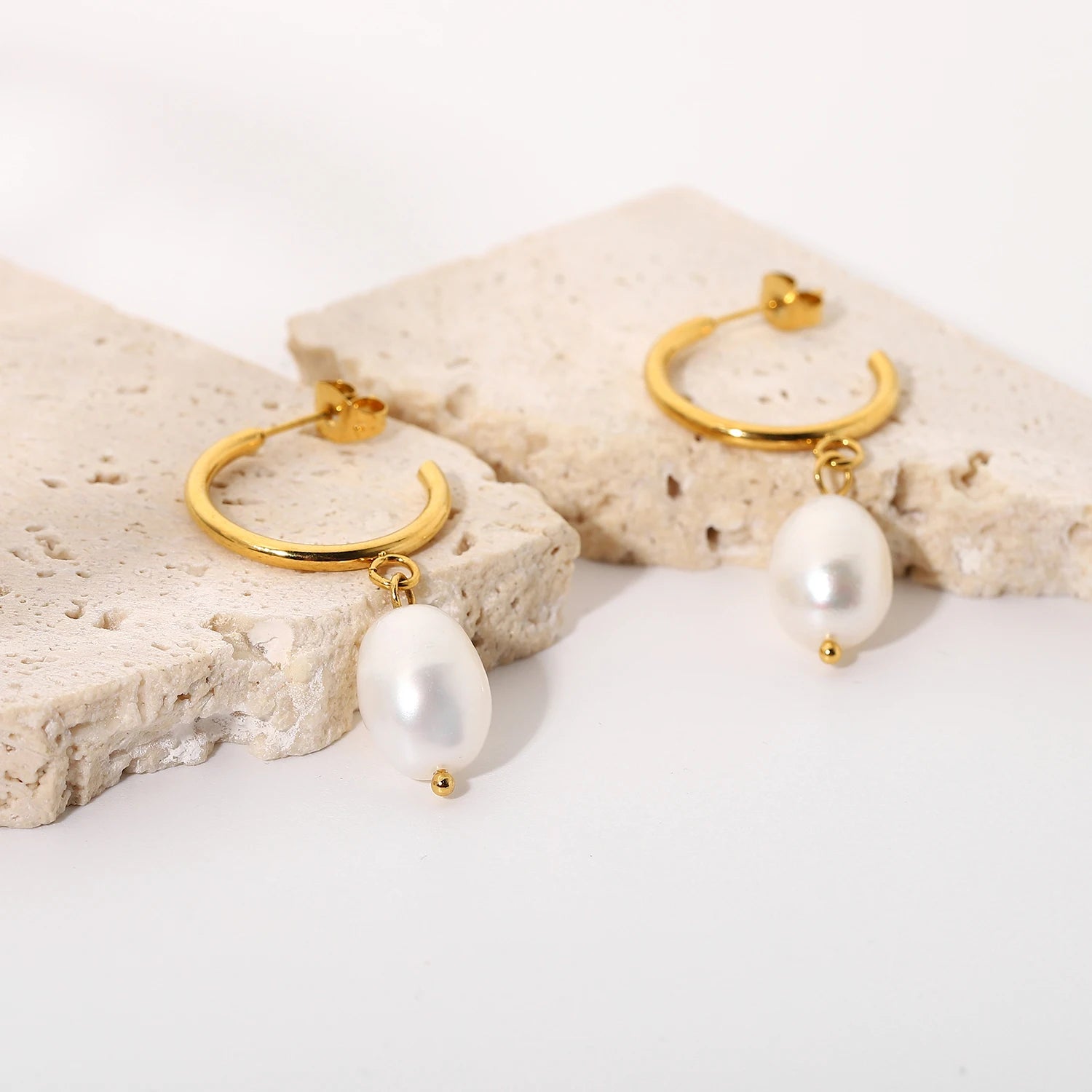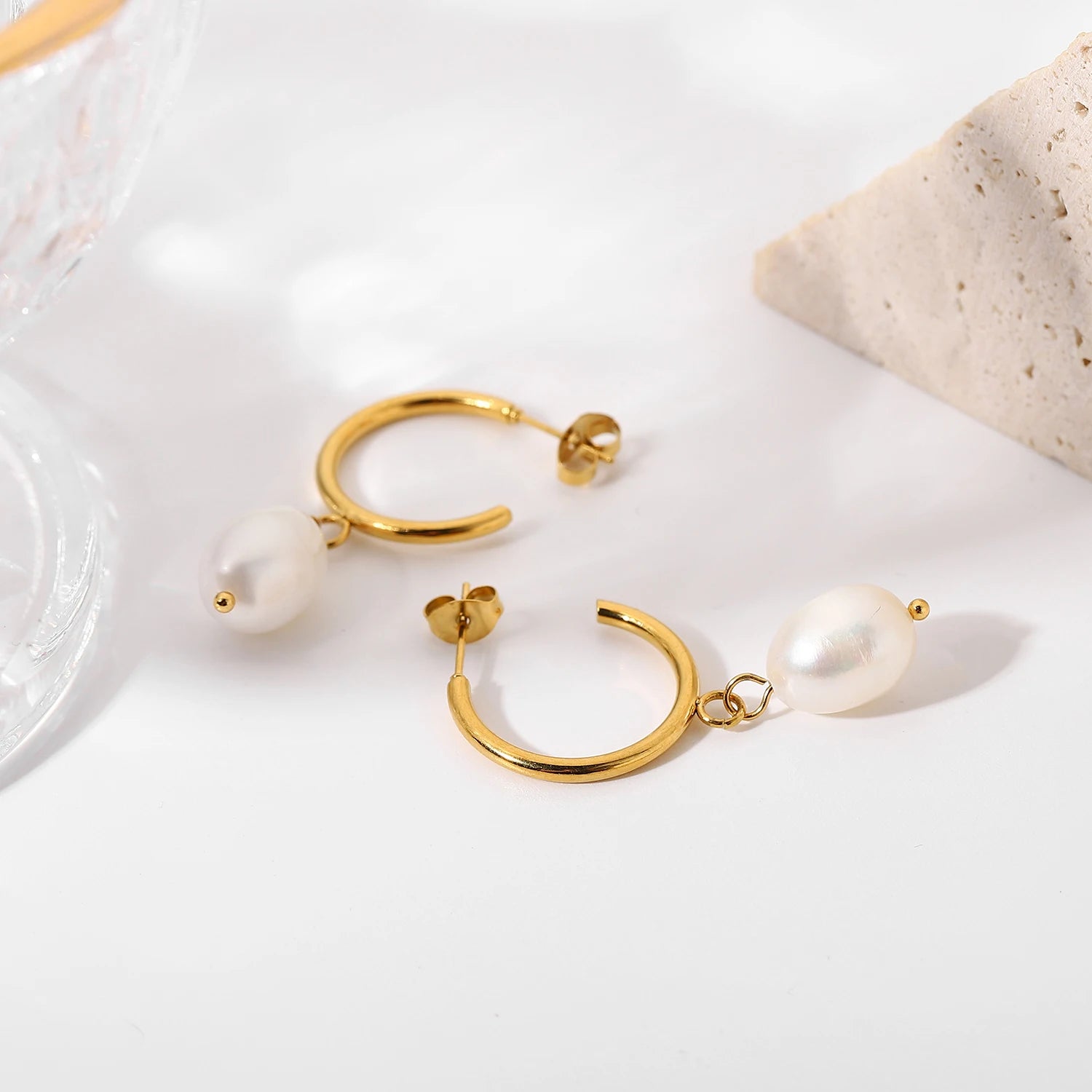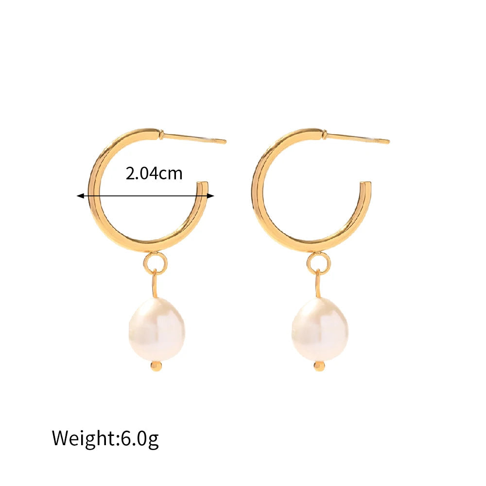 ステンレス304 低ニッケル 水に濡れても錆びにくい 18Kゴールドメッキ ピアス フープ パール 【YJ01786】