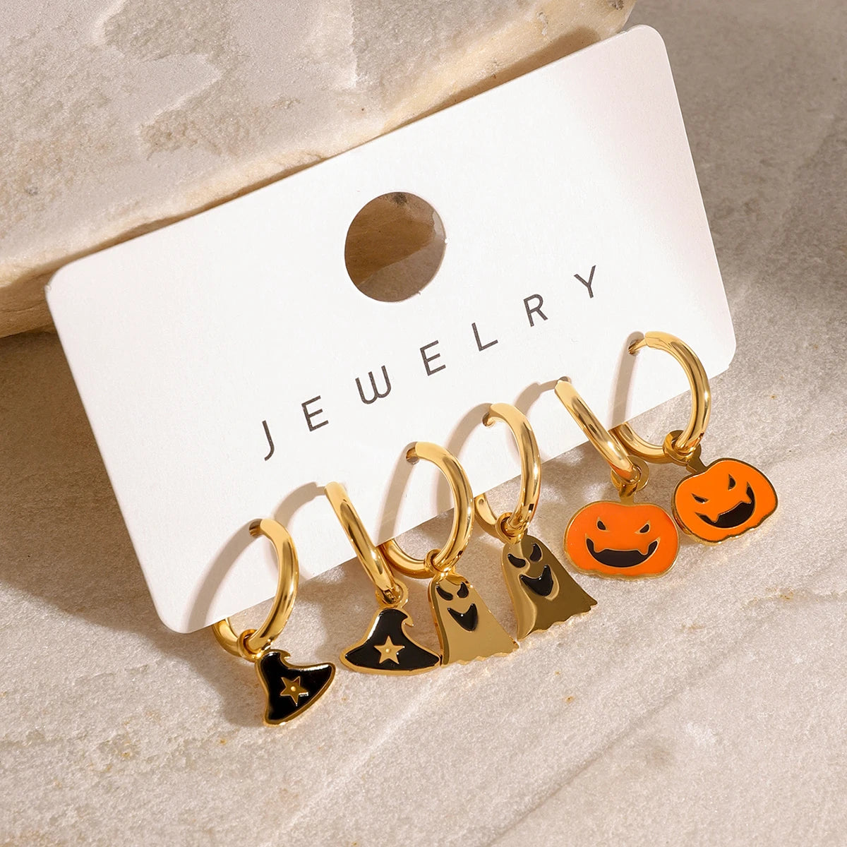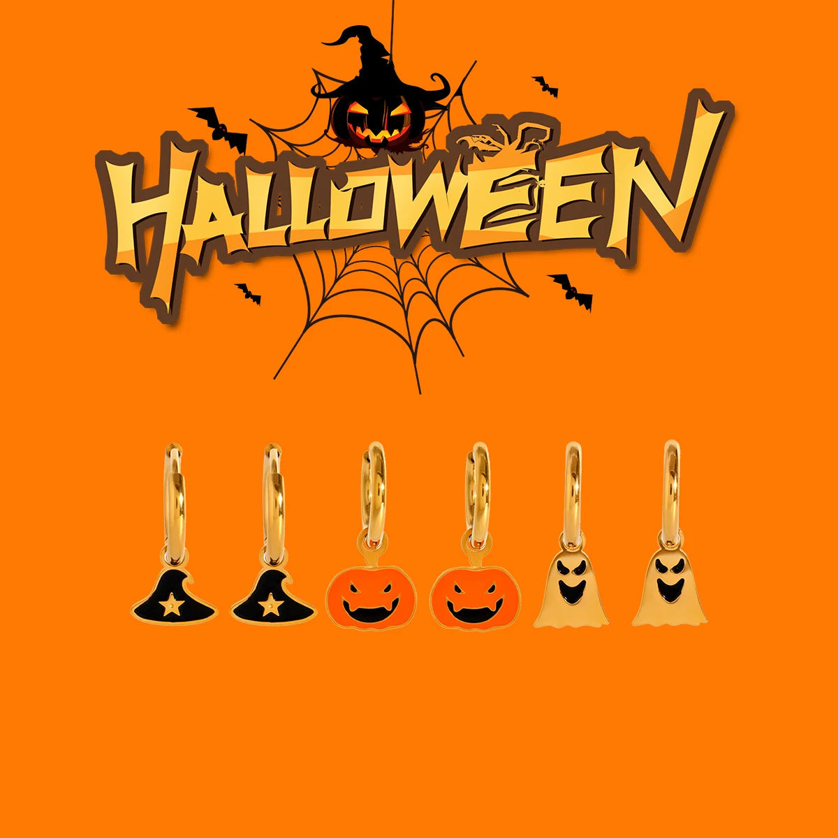 ステンレス304 低ニッケル 水に濡れても錆びにくい 18Kゴールドメッキ ピアス ハロウィン 3点セット【YJ01803】