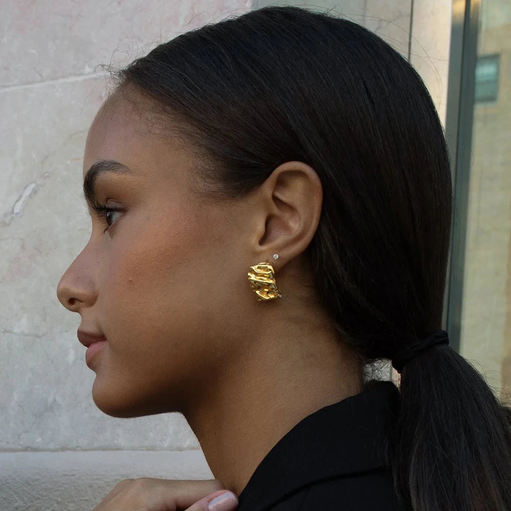 - ピアスのポスト部分は素材の特性上、キャッチがきつく感じられる場合や、スムーズに取り外せないことがありますが、これは不良品ではありませんのでご了承ください。特に新品時はゴールドメッキコーティングの厚みにより、やや固めに感じることがございます。無理に力を加えるとポストの曲がりや破損につながる可能性があるため、優しくゆっくりと着脱いただくことをおすすめします。