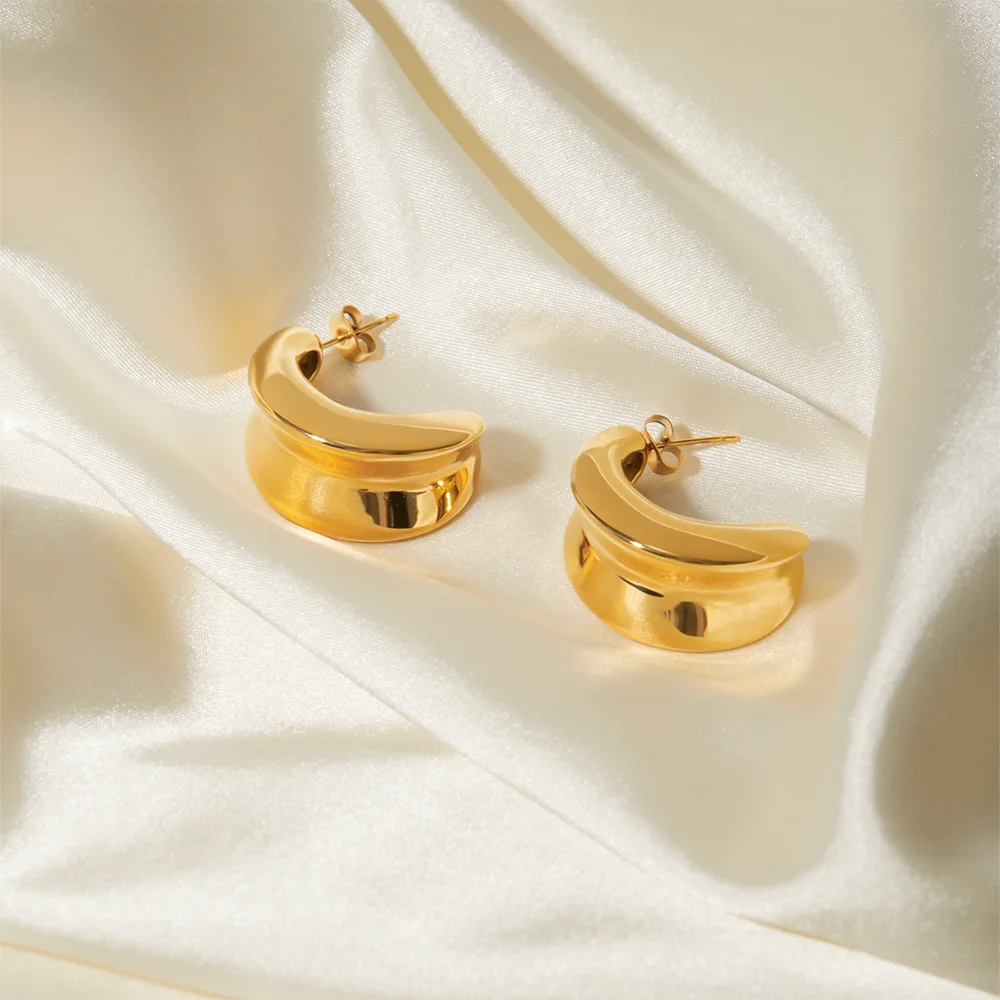 ステンレス304 低ニッケル 水に濡れても錆びにくい 18Kゴールドメッキ ピアス フープ 【YJ01930】
