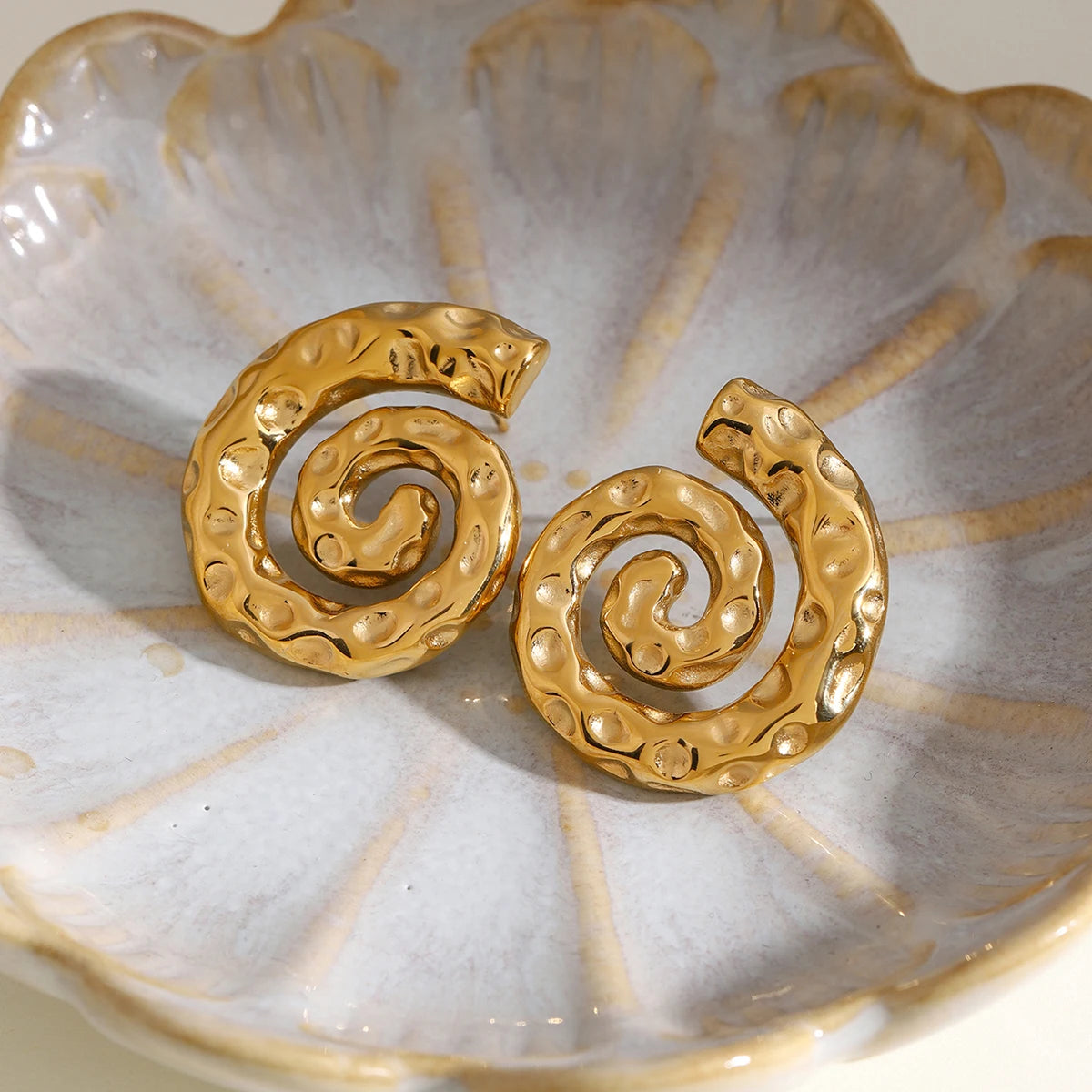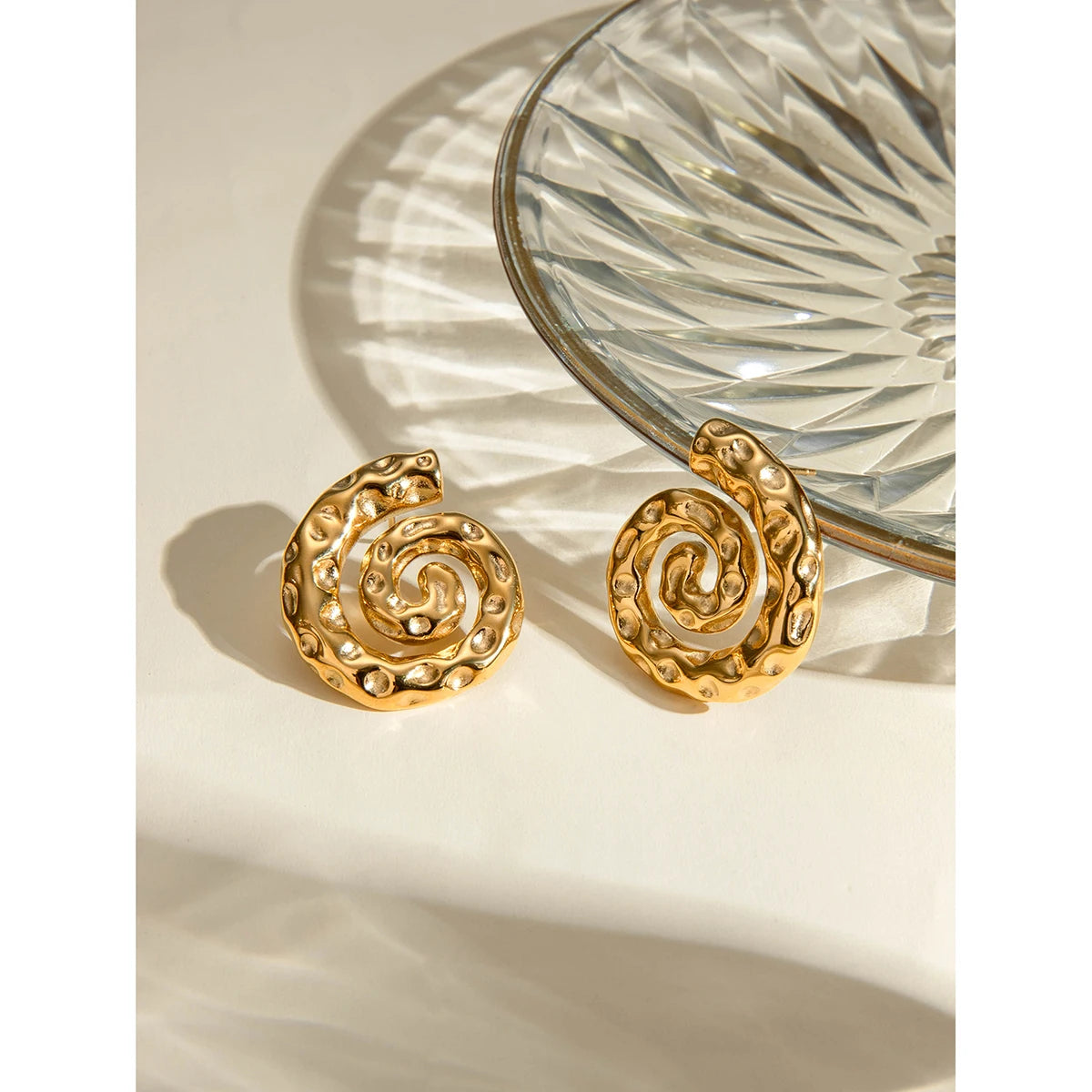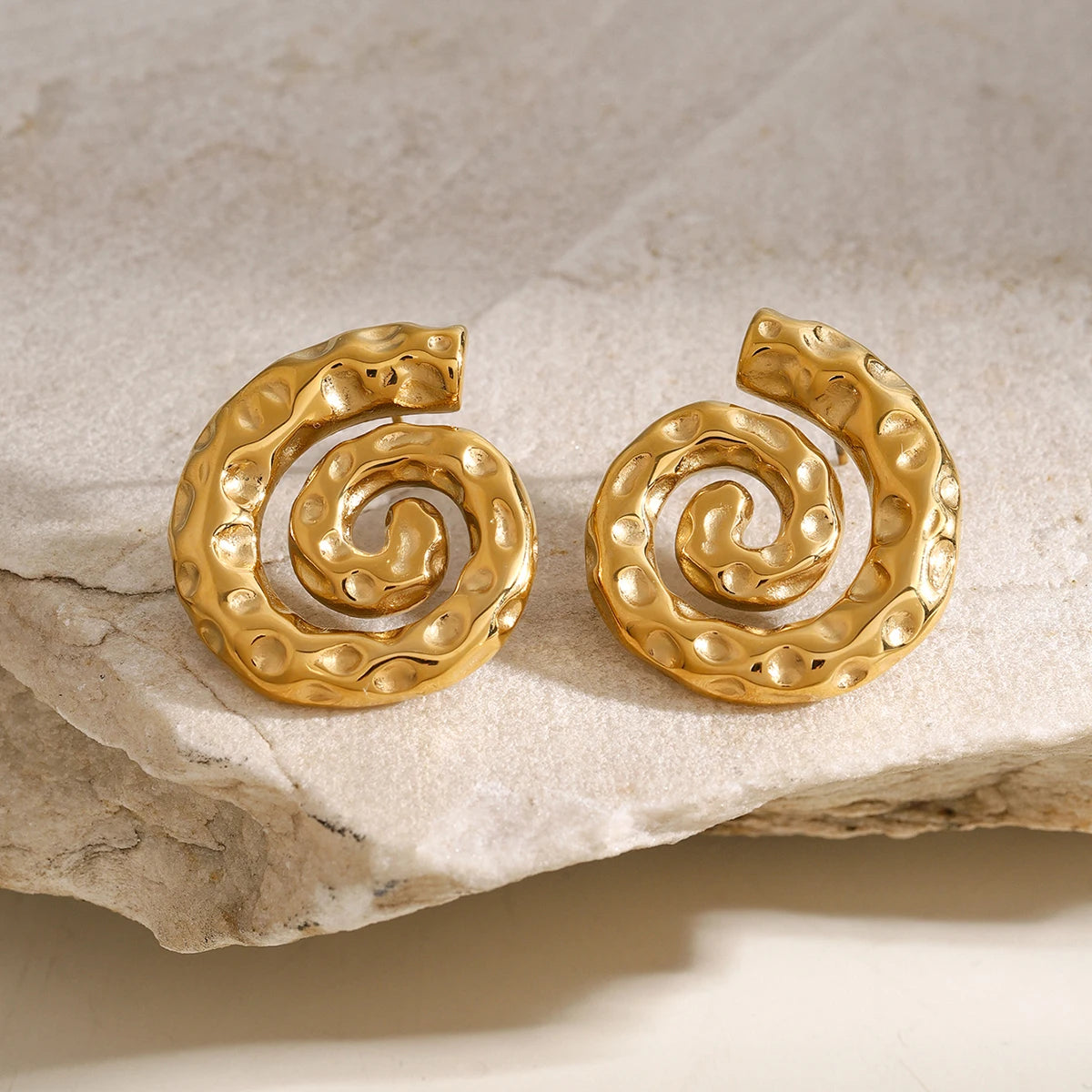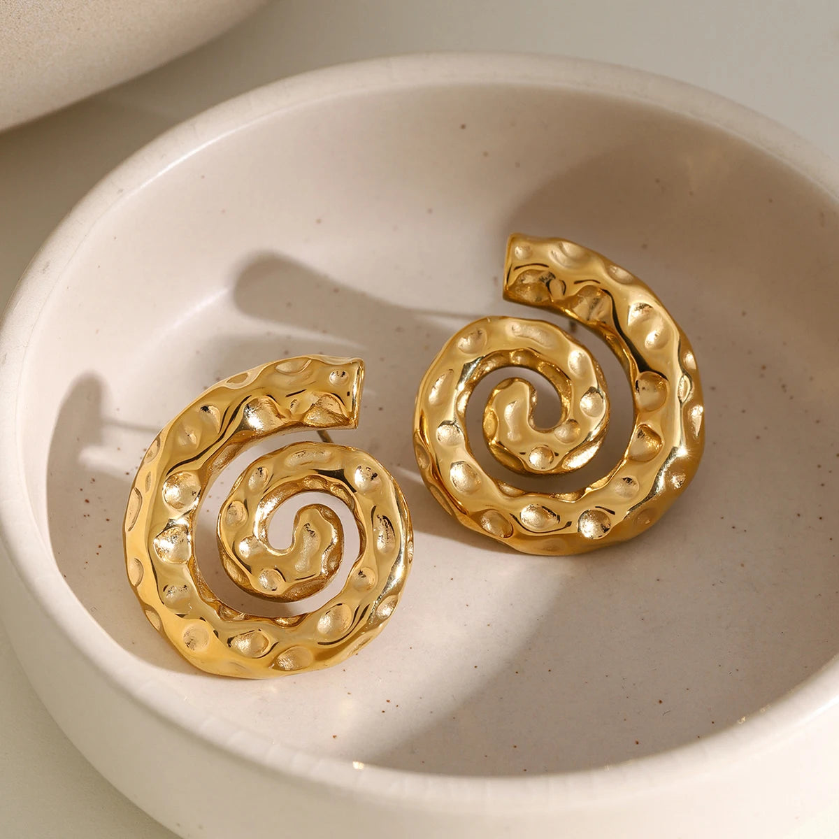 ステンレス304 低ニッケル 水に濡れても錆びにくい 18Kゴールドメッキ ピアス スパイラル 【YJ01938】