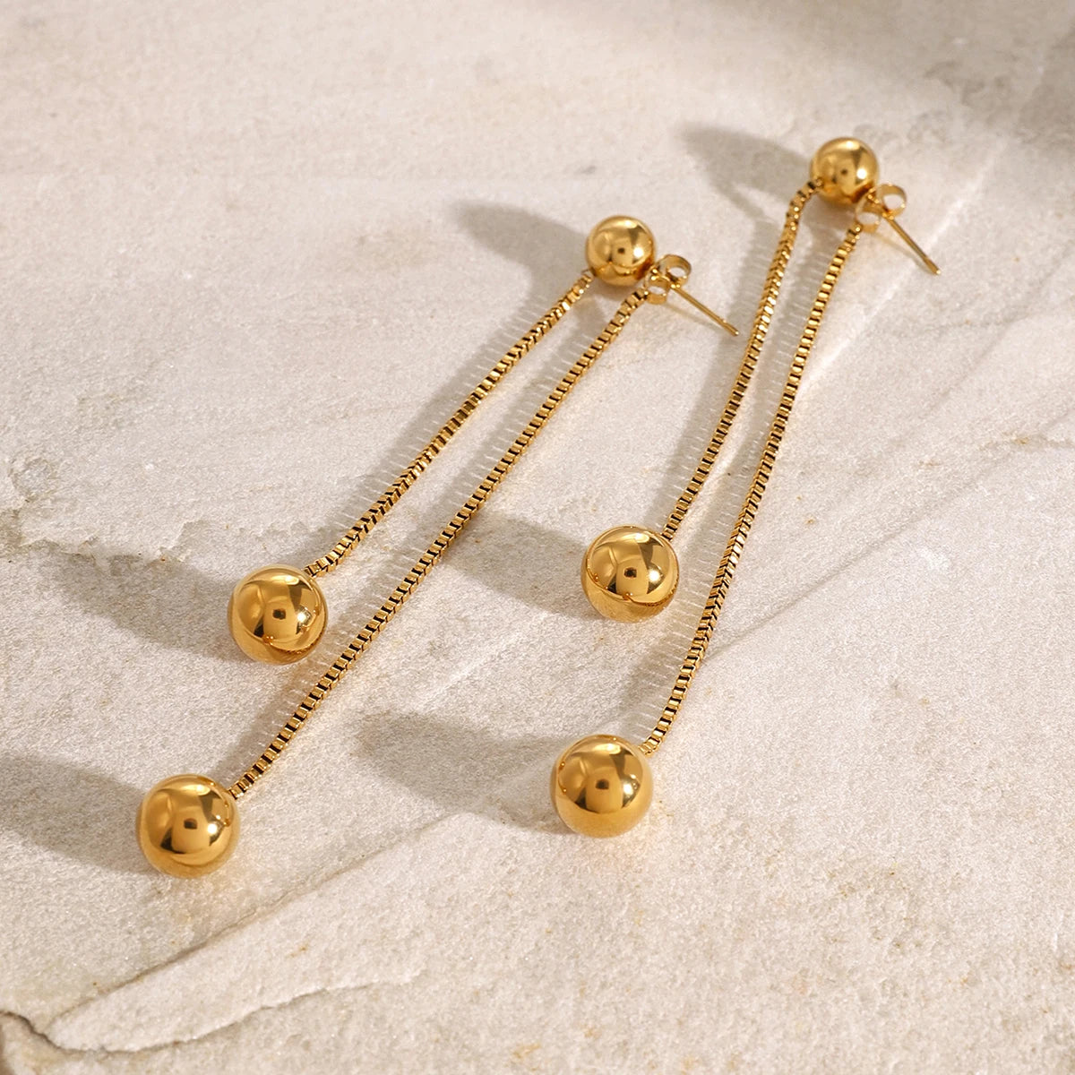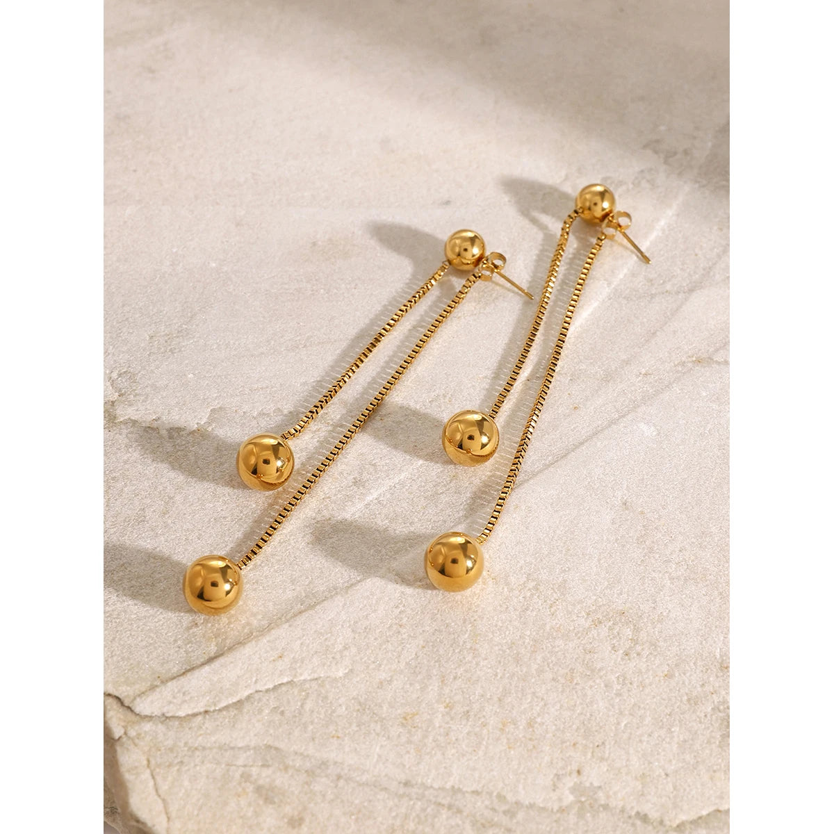 ステンレス304 低ニッケル 水に濡れても錆びにくい 18Kゴールドメッキ ピアス タッセル ボール 【YJ02063】