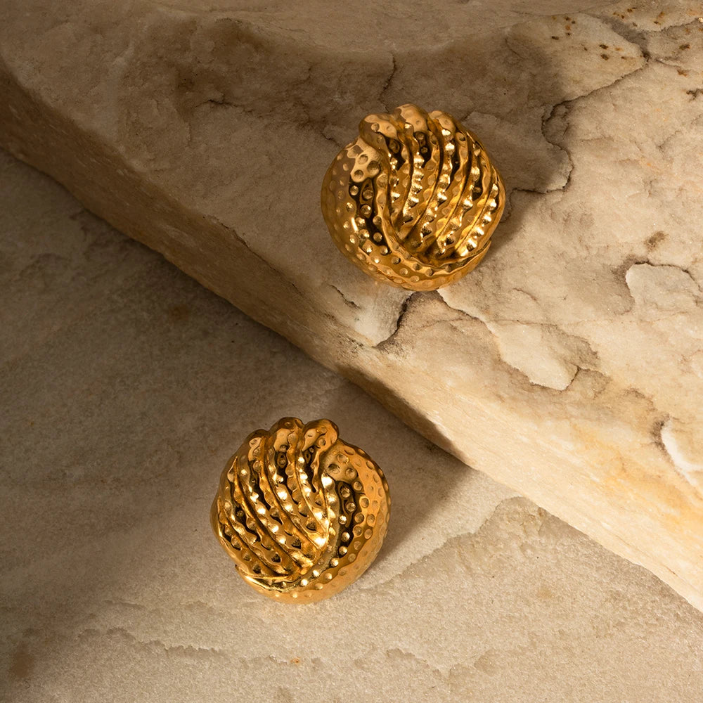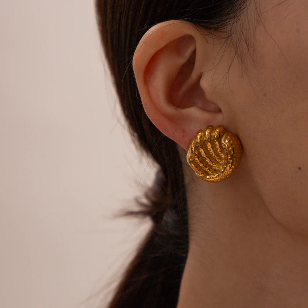 • ピアスのポスト部分は素材の特性上、キャッチがきつく感じられる場合や、スムーズに取り外せないことがありますが、これは不良品ではありませんのでご了承ください。特に新品時はゴールドメッキコーティングの厚みにより、やや固めに感じることがございます。無理に力を加えるとポストの曲がりや破損につながる可能性があるため、優しくゆっくりと着脱いただくことをおすすめします。
