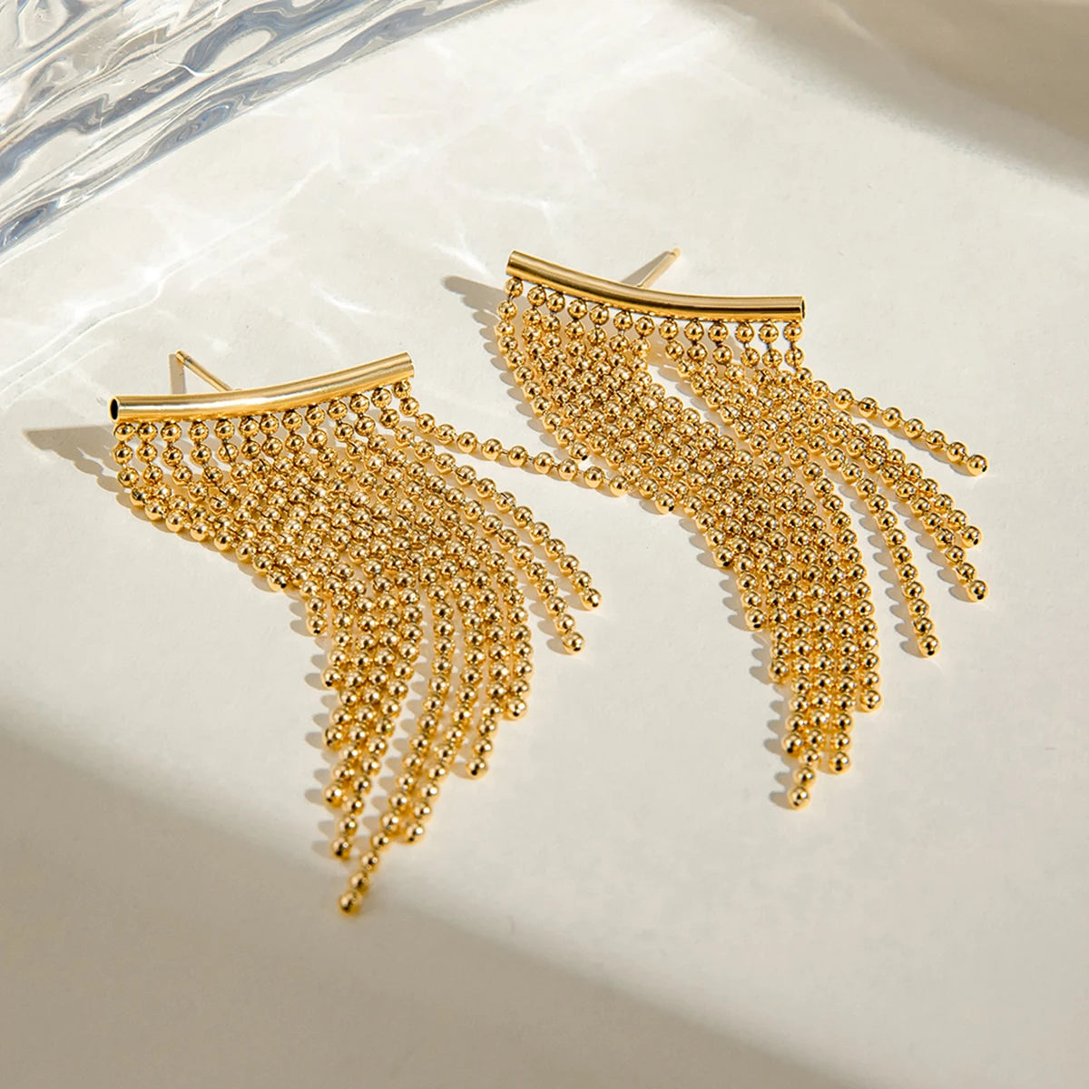 ステンレス304 低ニッケル 水に濡れても錆びにくい 18Kゴールドメッキ ピアス タッセル 【YJ02203】