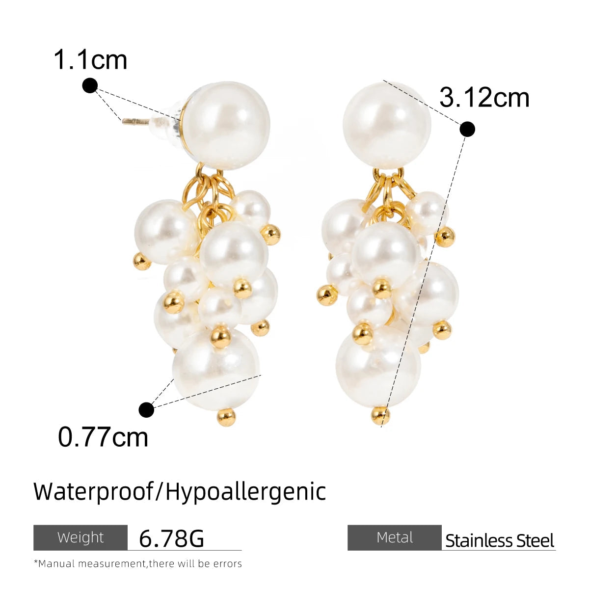 ステンレス304 低ニッケル 水に濡れても錆びにくい 18Kゴールドメッキ ピアス パール 【YJ02230】