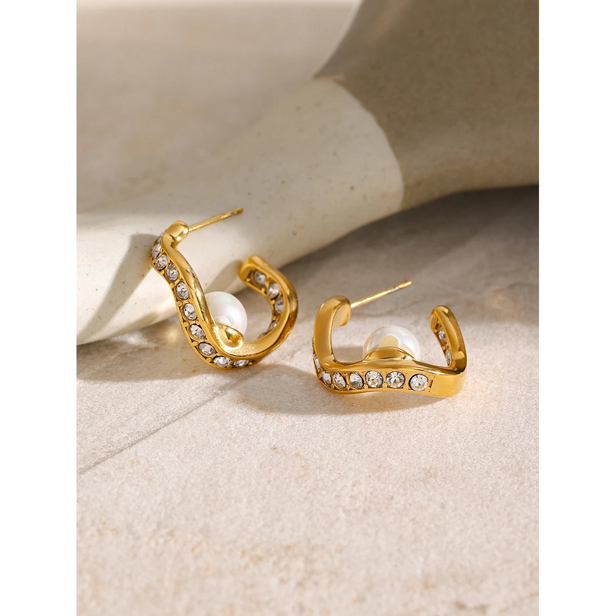 ステンレス304 低ニッケル 水に濡れても錆びにくい 18Kゴールドメッキ ピアス フープ パール 【YJ02259】