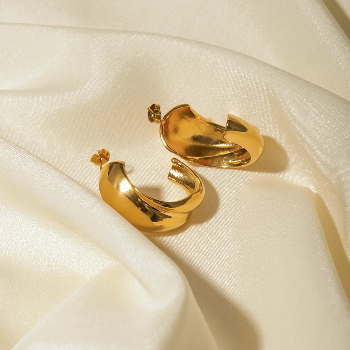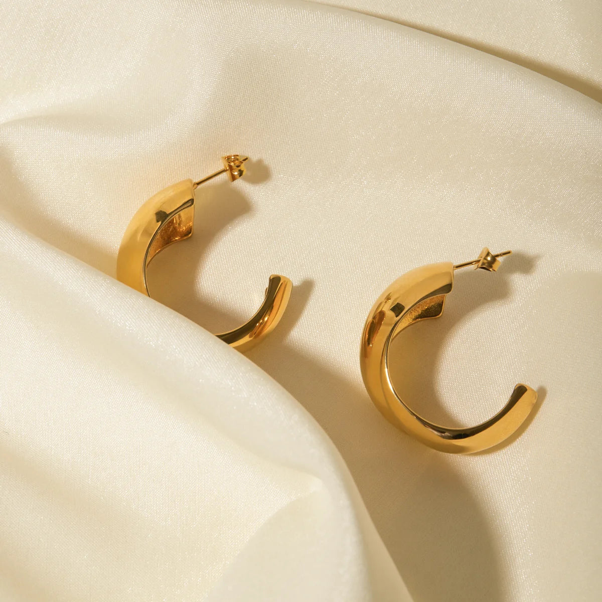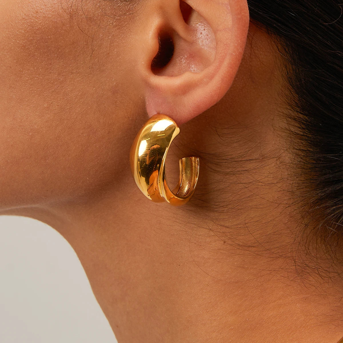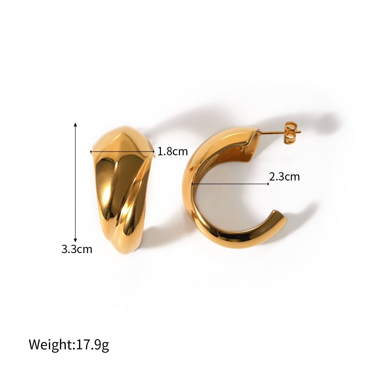 ステンレス304 低ニッケル 水に濡れても錆びにくい 18Kゴールドメッキ ピアス チャンキー 【YJ02323】
