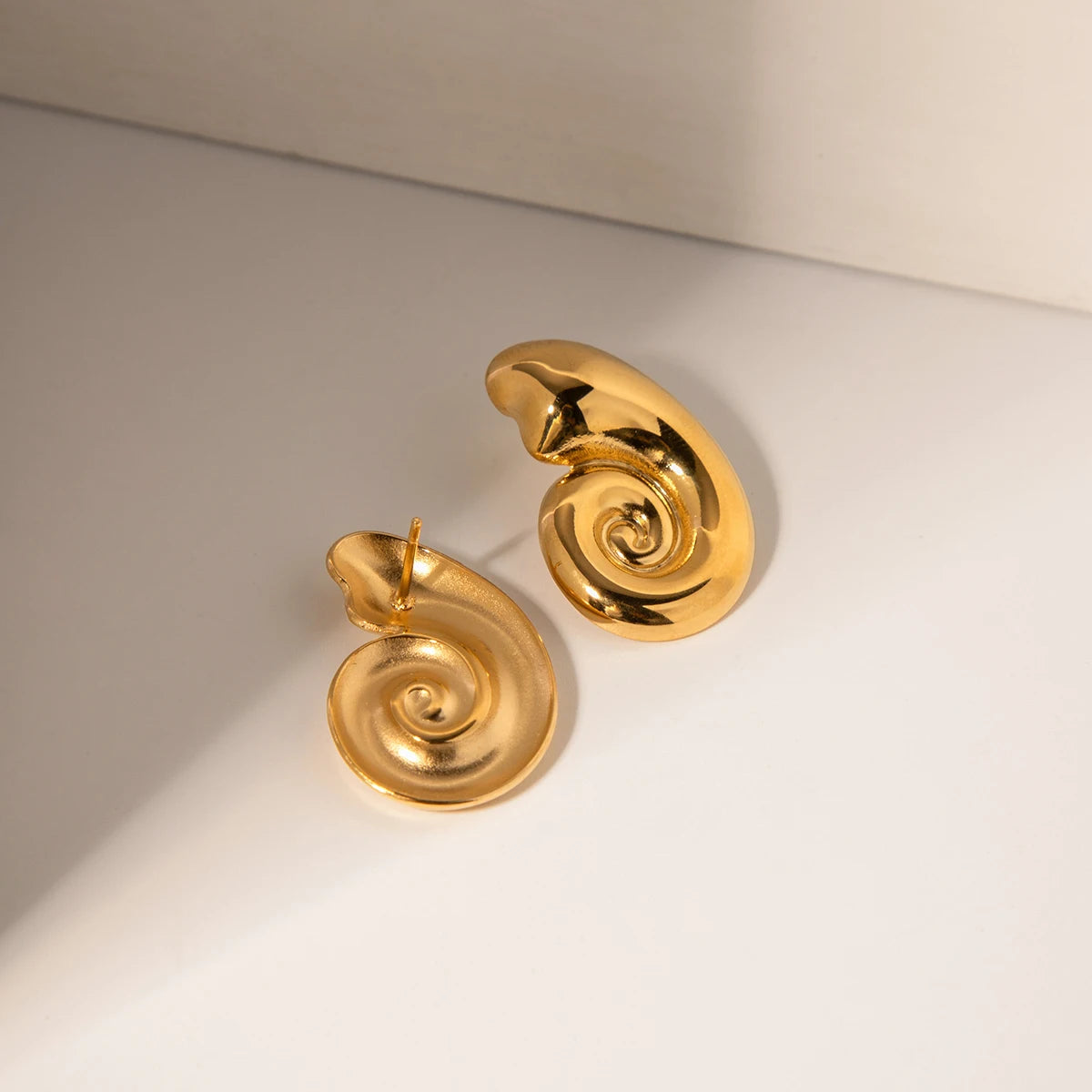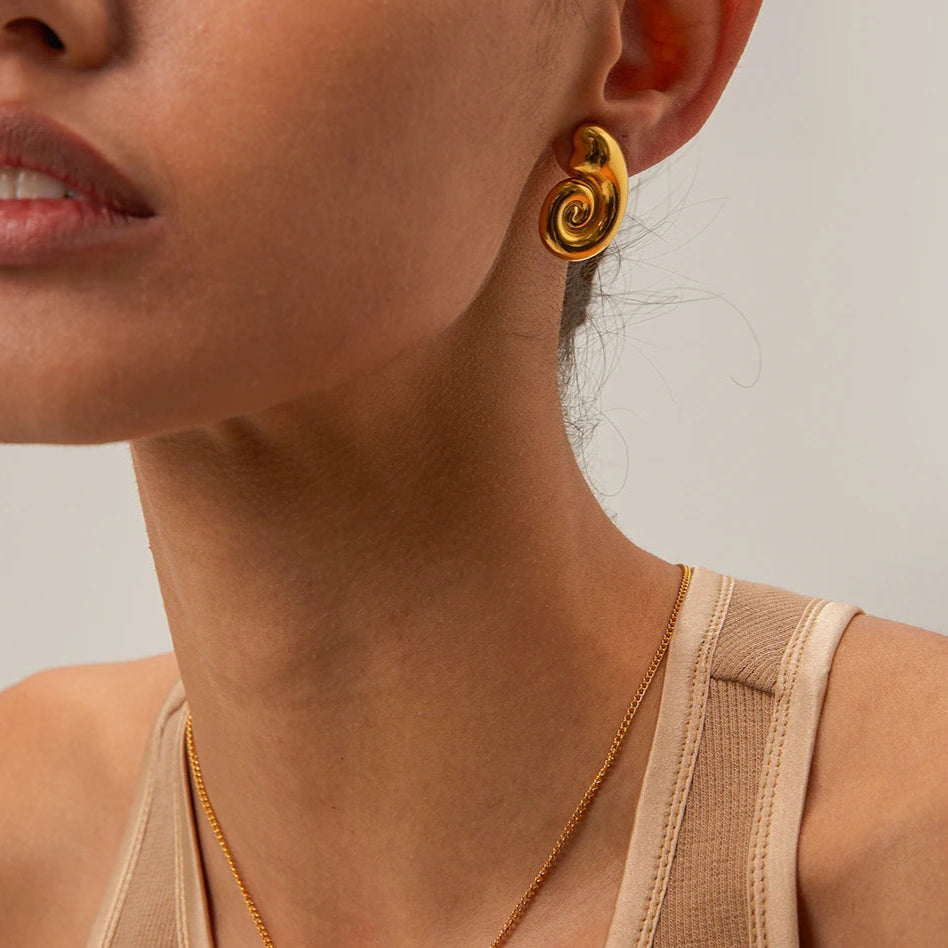 ステンレス304 低ニッケル 水に濡れても錆びにくい 18Kゴールドメッキ ピアス スパイラル アンモナイト 【YJ02421】