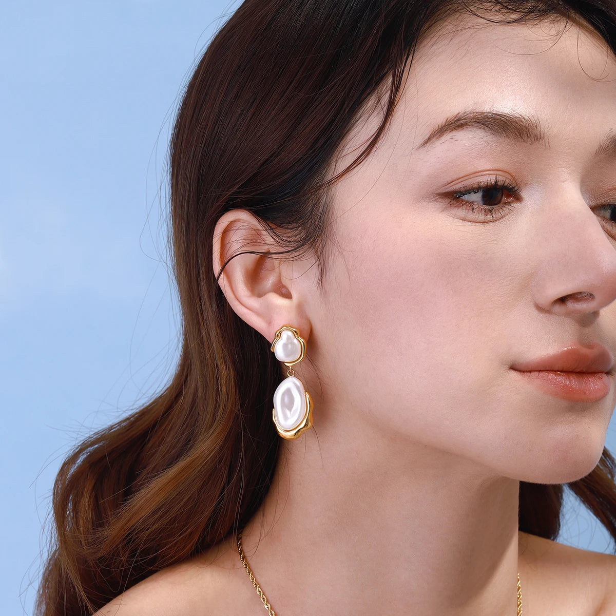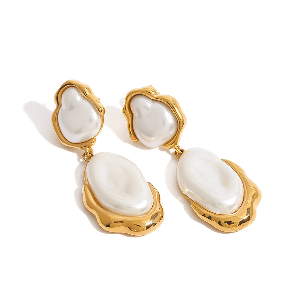 ステンレス304 低ニッケル 水に濡れても錆びにくい 18Kゴールドメッキ ピアス バロックパール 【YJ02448】