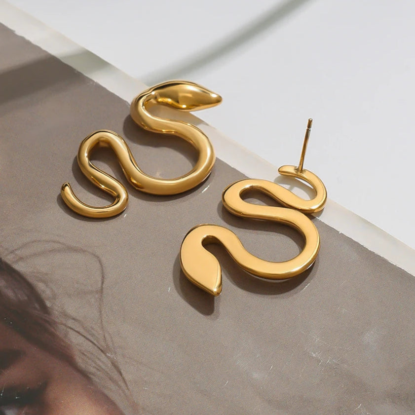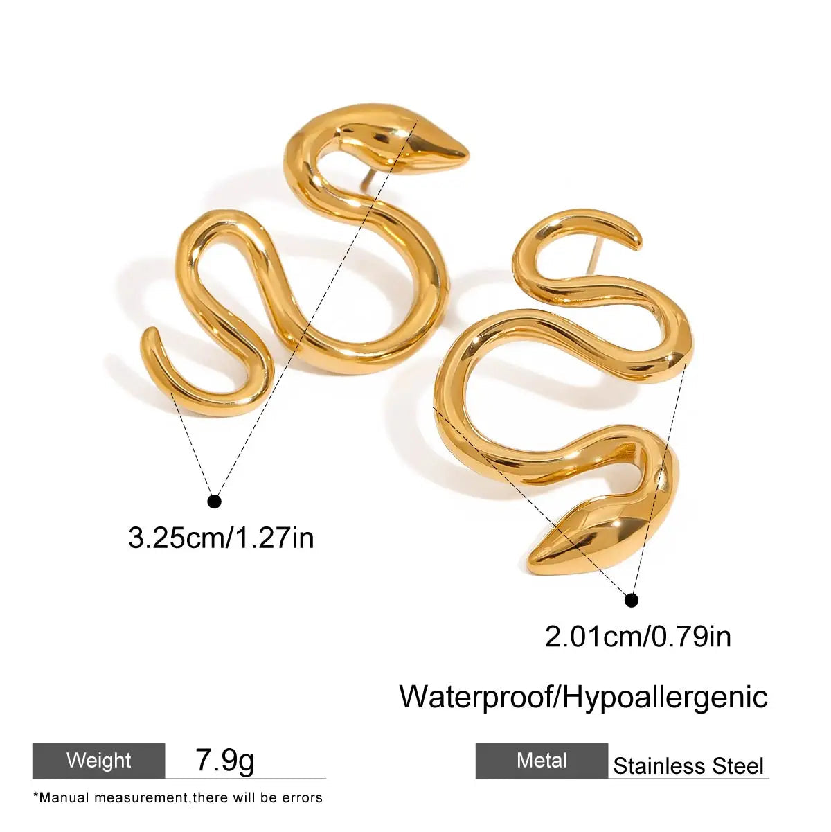ステンレス304 低ニッケル 水に濡れても錆びにくい 18Kゴールドメッキ ピアス 蛇 ヘビ スネーク 【YJ02459】