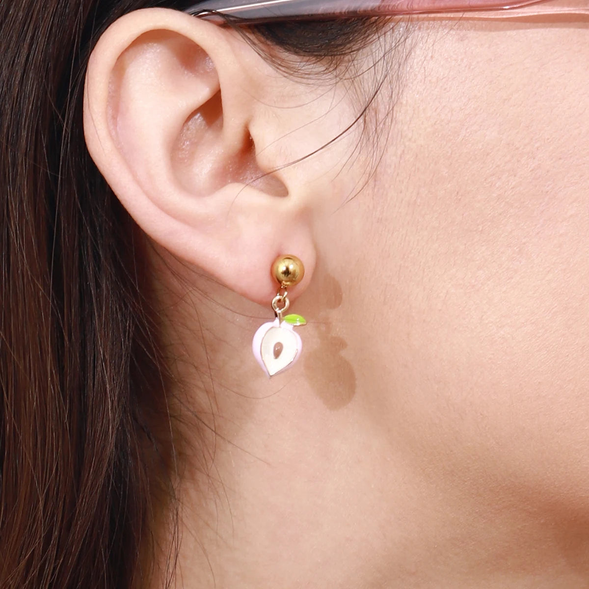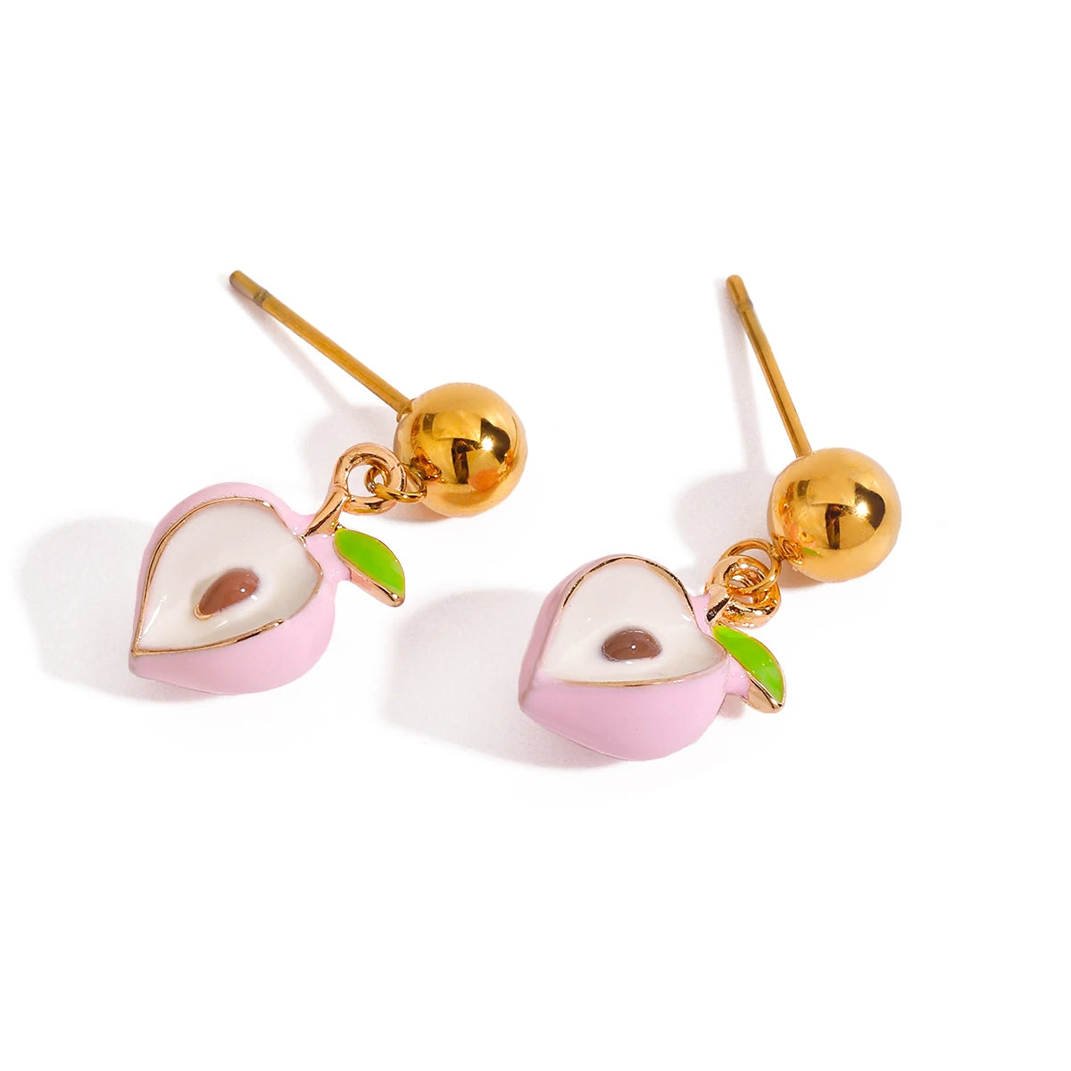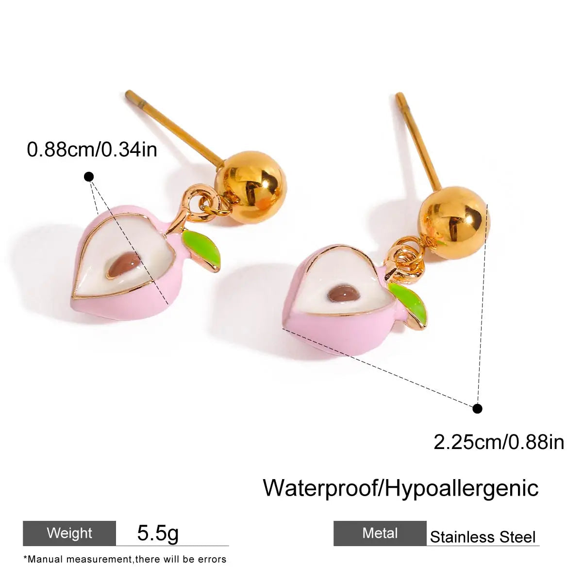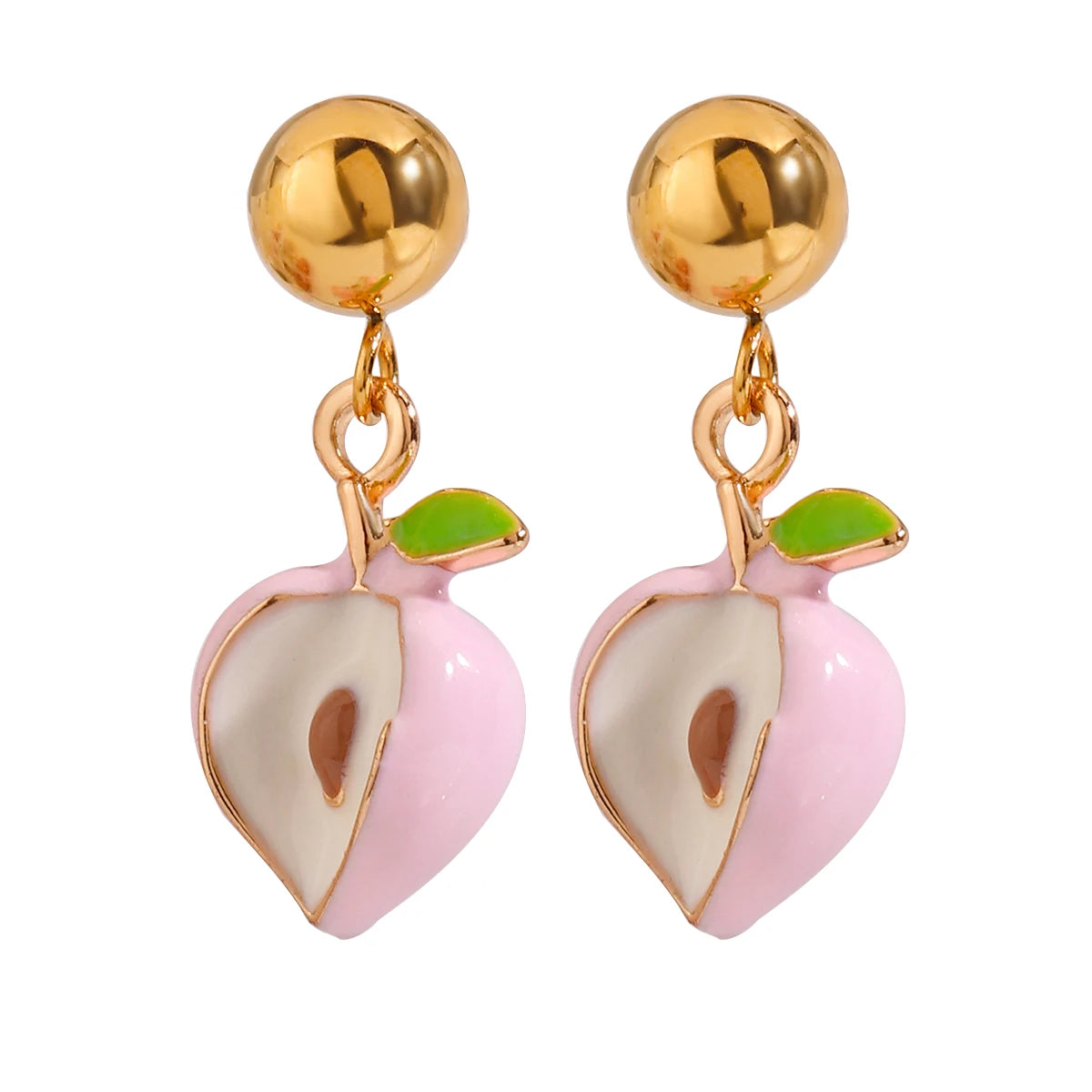 ステンレス304 低ニッケル 水に濡れても錆びにくい 18Kゴールドメッキ ピアス 桃 ピーチ【YJ02646】