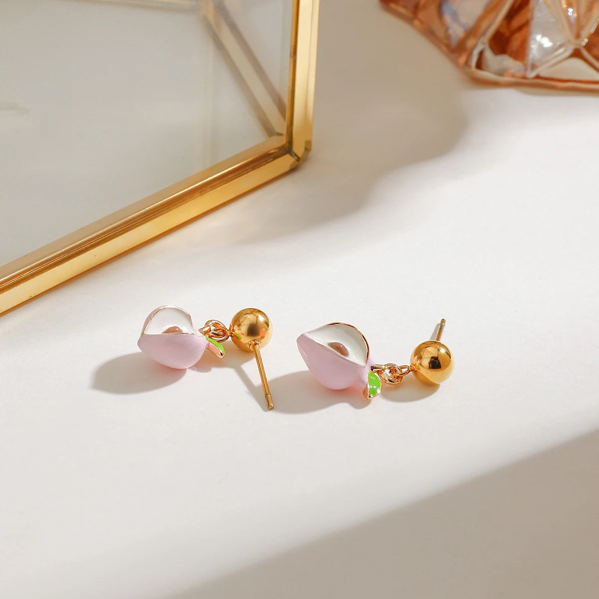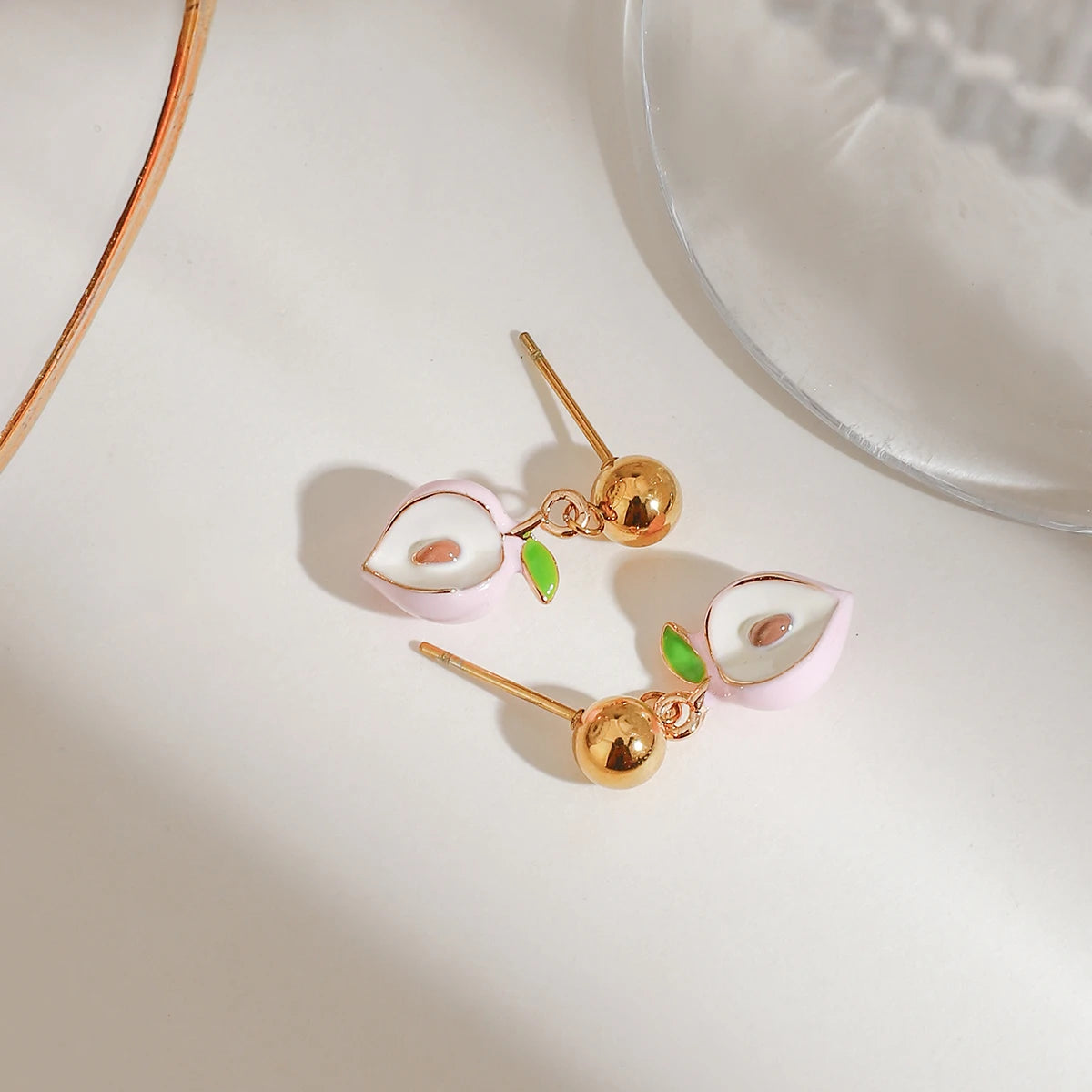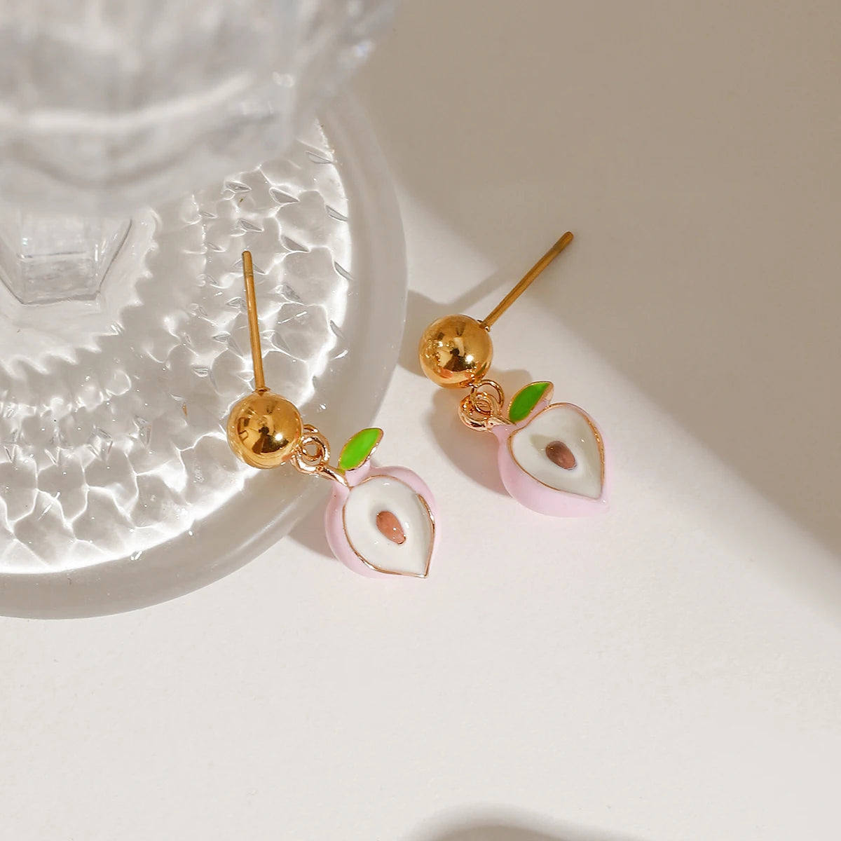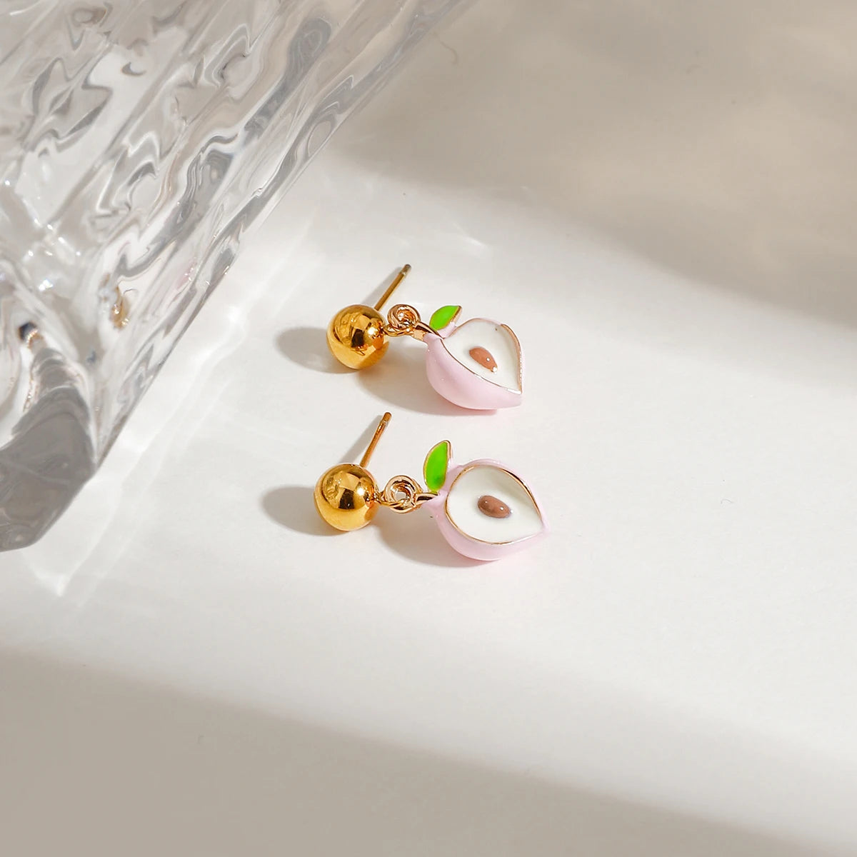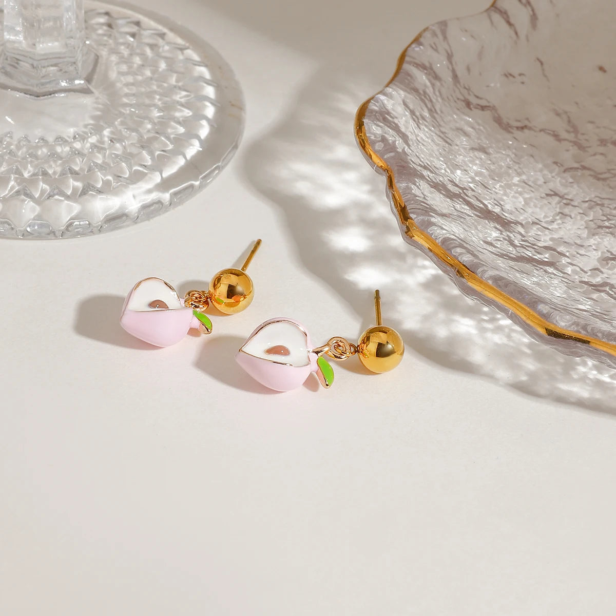 ステンレス304 低ニッケル 水に濡れても錆びにくい 18Kゴールドメッキ ピアス 桃 ピーチ【YJ02646】