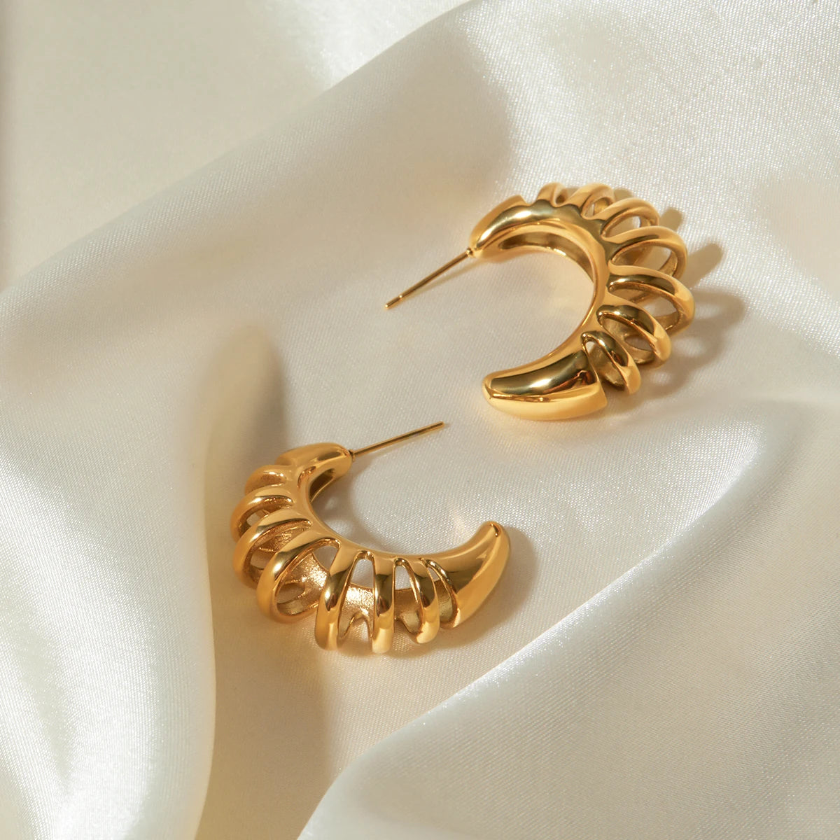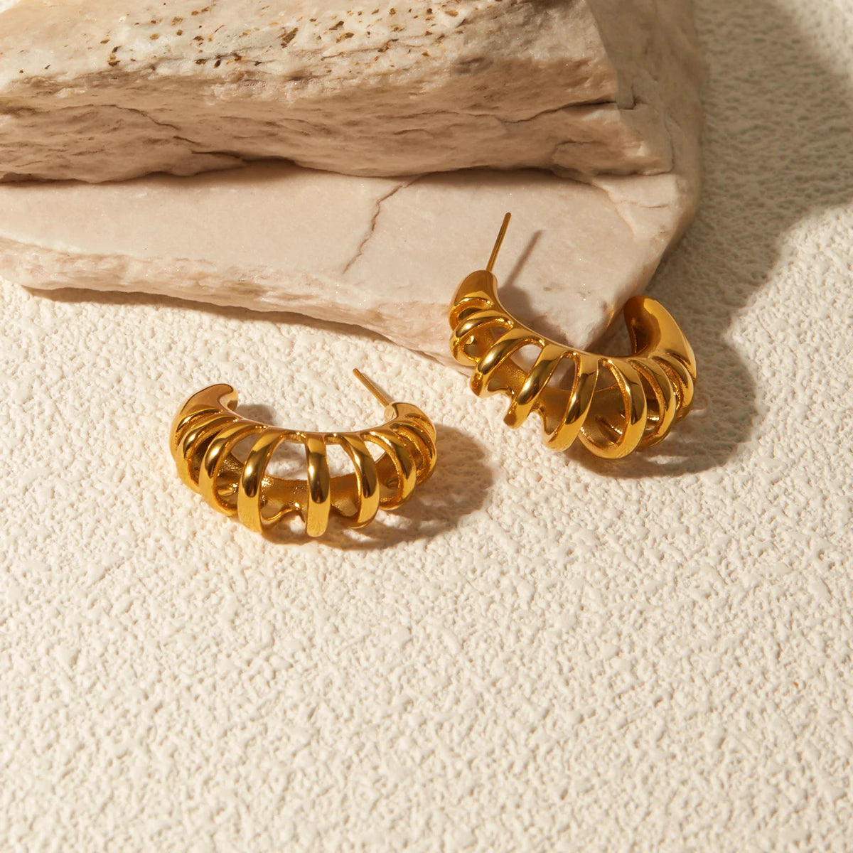 ステンレス304 低ニッケル 水に濡れても錆びにくい 18Kゴールドメッキ ピアス フープ 【YJ02652】